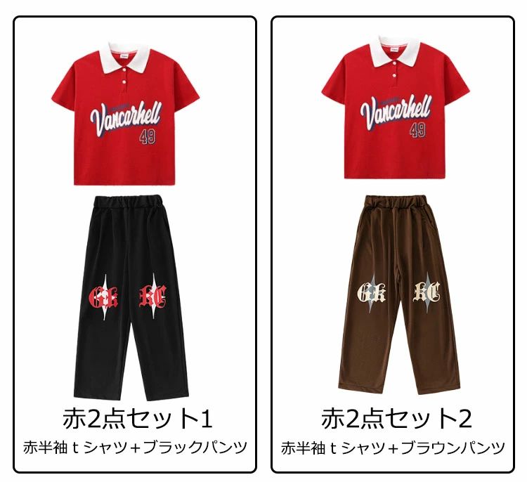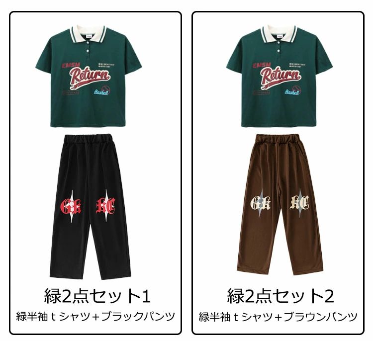 商品内容: 緑半袖tシャツ 赤半袖tシャツ ブラックパンツ ブラウンパンツ 緑2点セット1 緑2点セット2 赤2点セット1 赤2点セット2