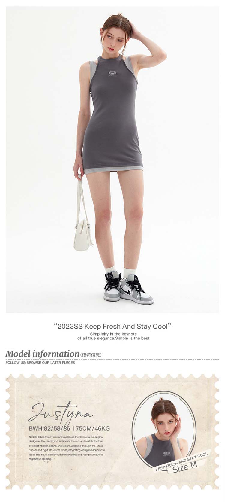 タンクトップレディースTシャツノースリーブUネックロゴプリント