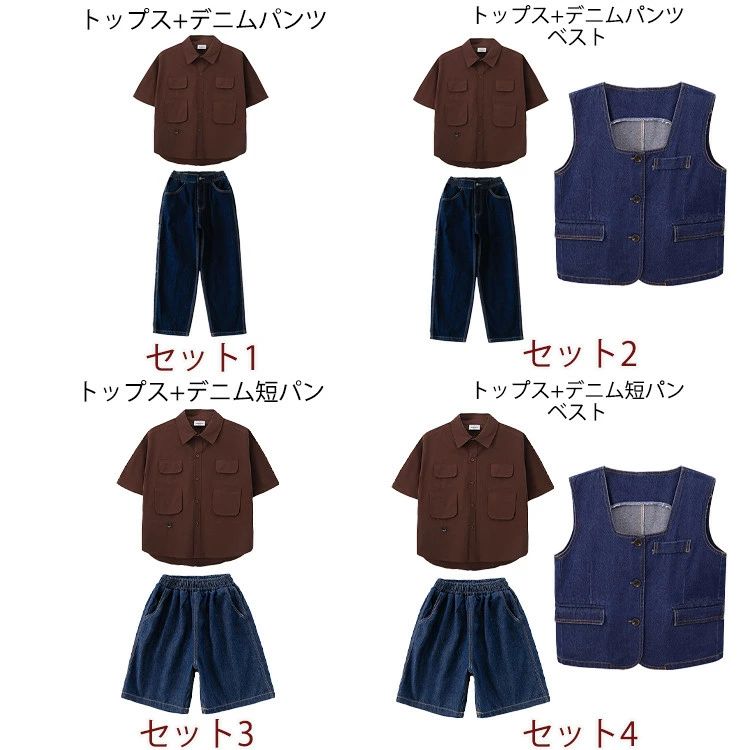 商品内容: 茶色トップスのみ デニムベストのみ デニムパンツのみ デニム短パンのみ セット1 セット2 セット3 セット4