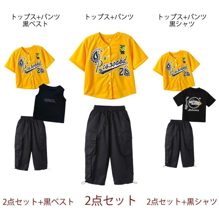 商品内容: 黄色トップスのみ 黒パンツのみ 2点セット 2点セット+黒ベス 2点セット+黒シャツ 黒ベストのみ 黒シャツのみ