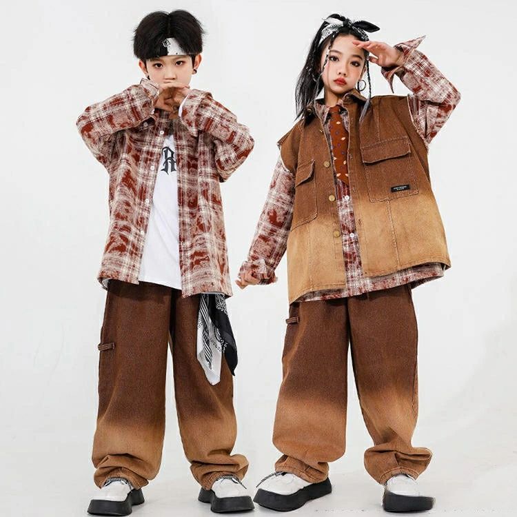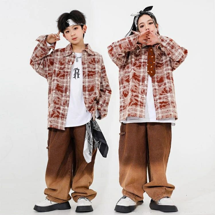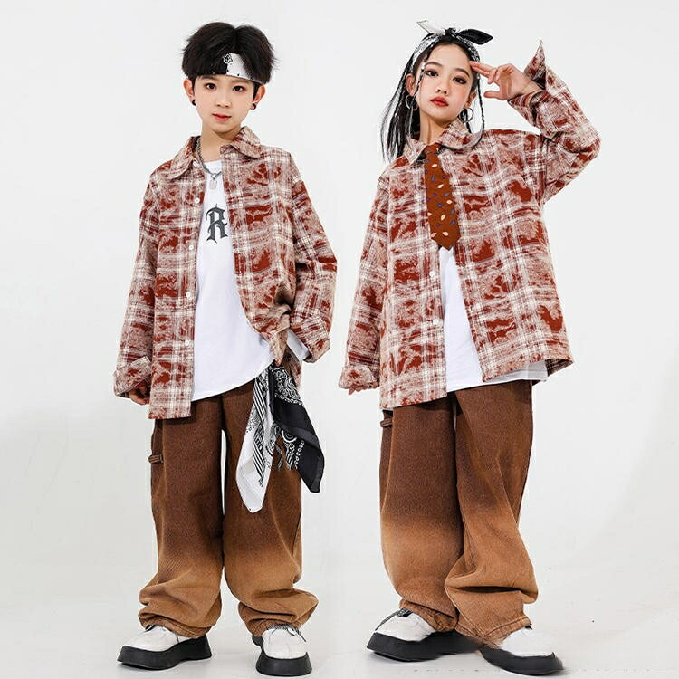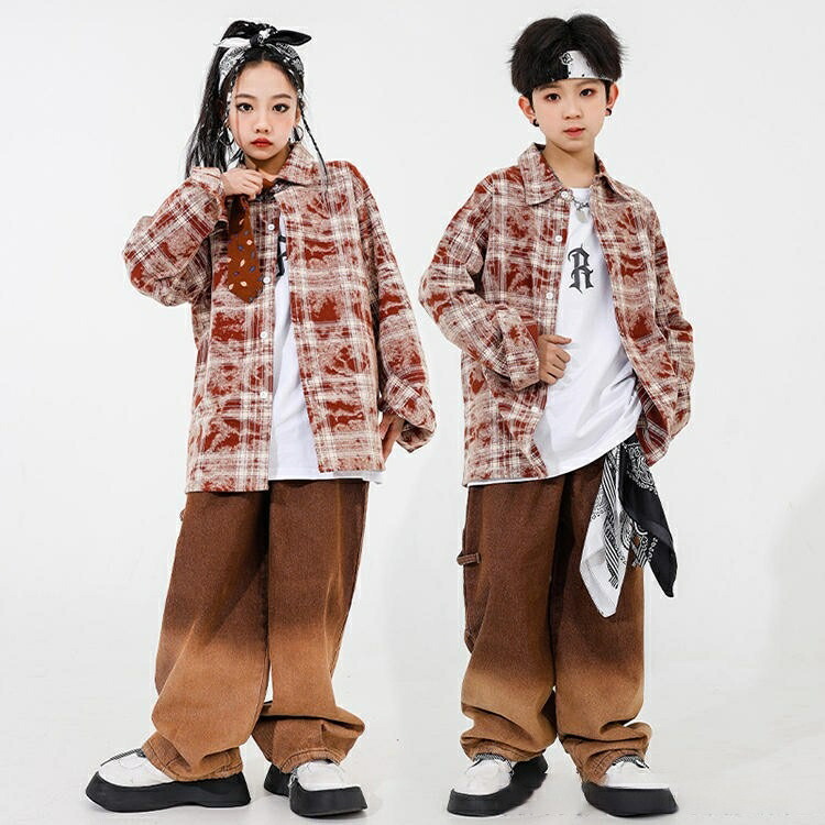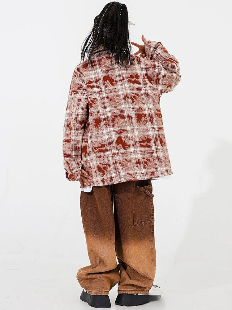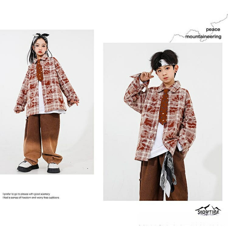 ブラウン チェック柄 トップス デニム