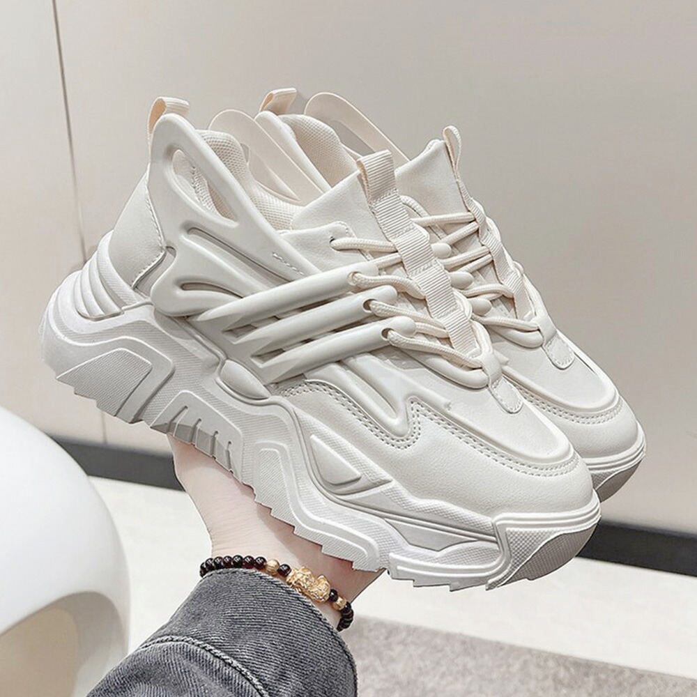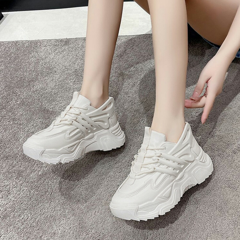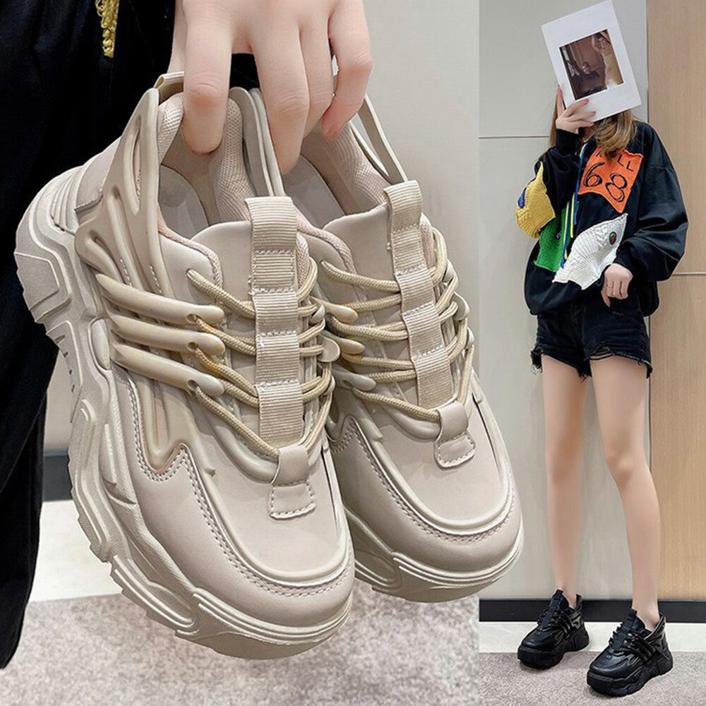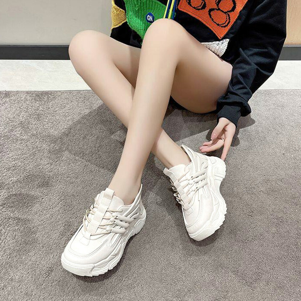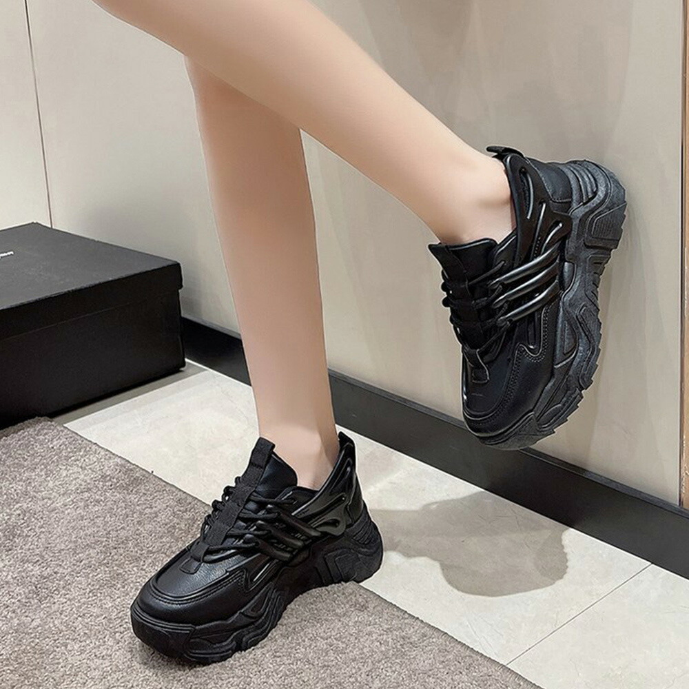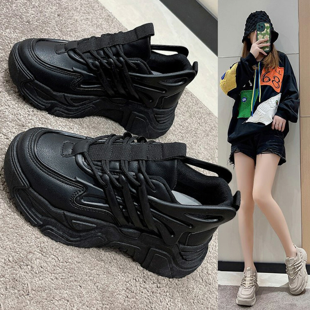 ダッドスニーカー 厚底 レディース 韓国 ボリュームスニーカー 黒 レースアップ 歩きやすいシューズ インヒール 美脚脚長 フラットシューズ カジュアル厚底靴