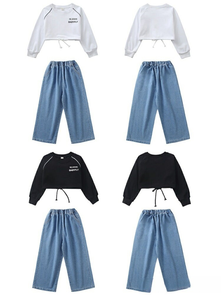 商品内容: ホワイトトップスのみ ブラックトップスのみ デニムパンツのみ ホワイトトップス+デニムパンツ ブラックトップス+デニムパンツ