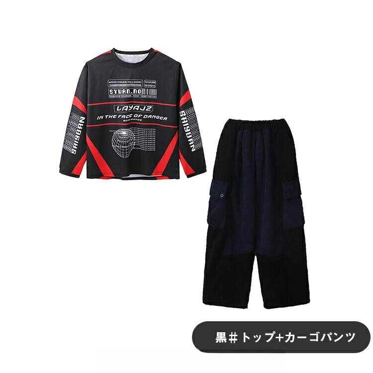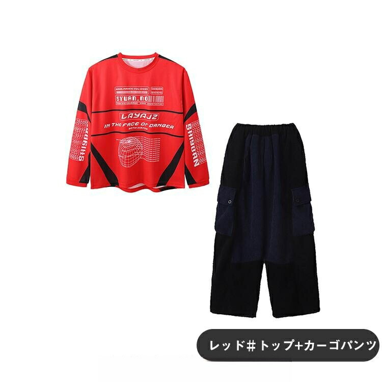 商品内容: 黒トップス レッドトップス カーゴパンツ 黒トップス+カーゴパンツ レッドトップス+カーゴパンツ