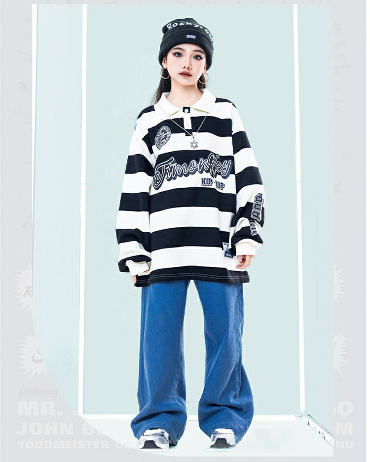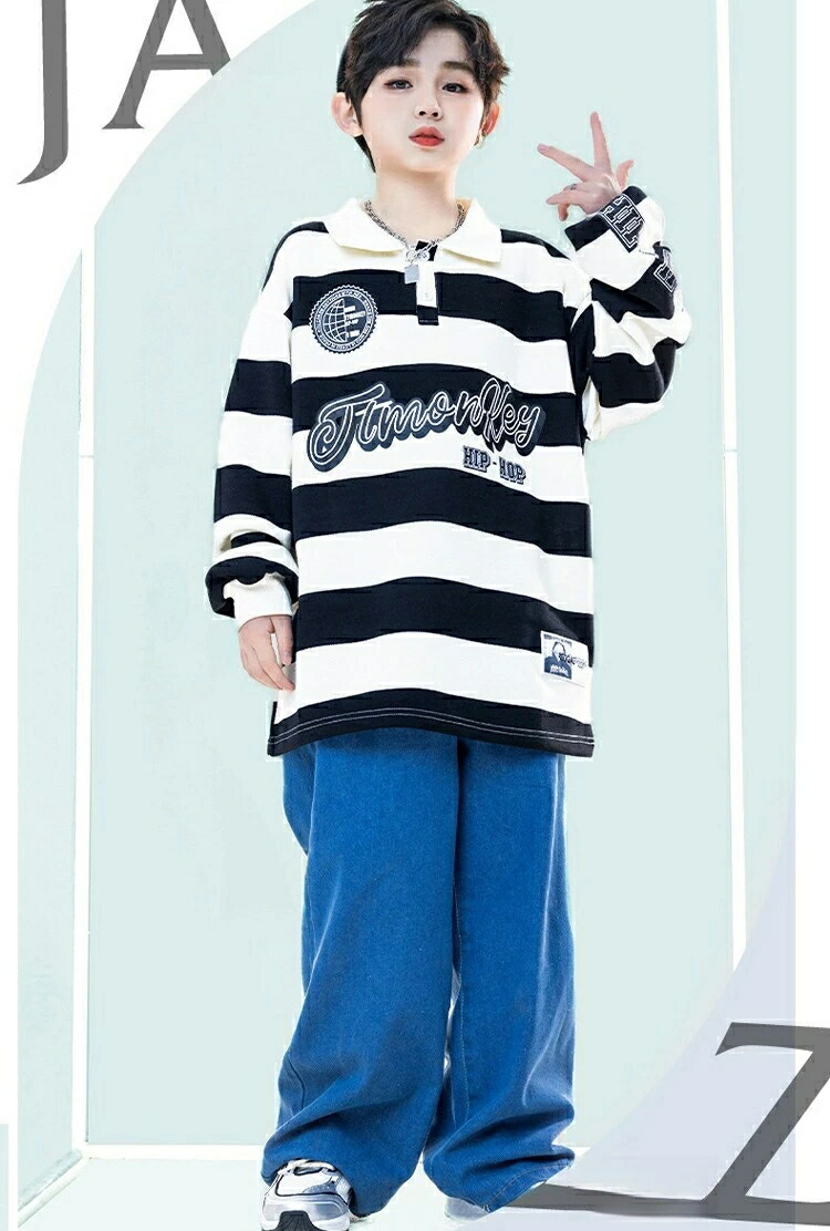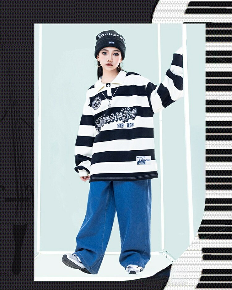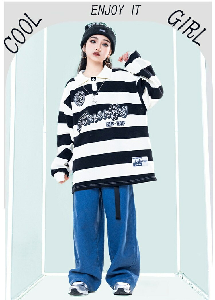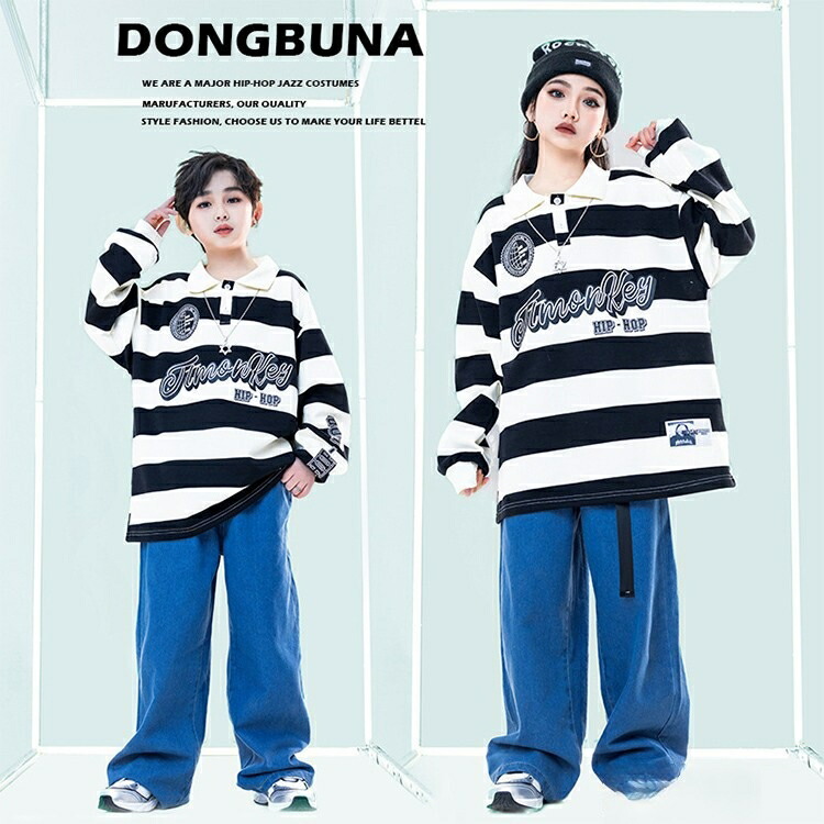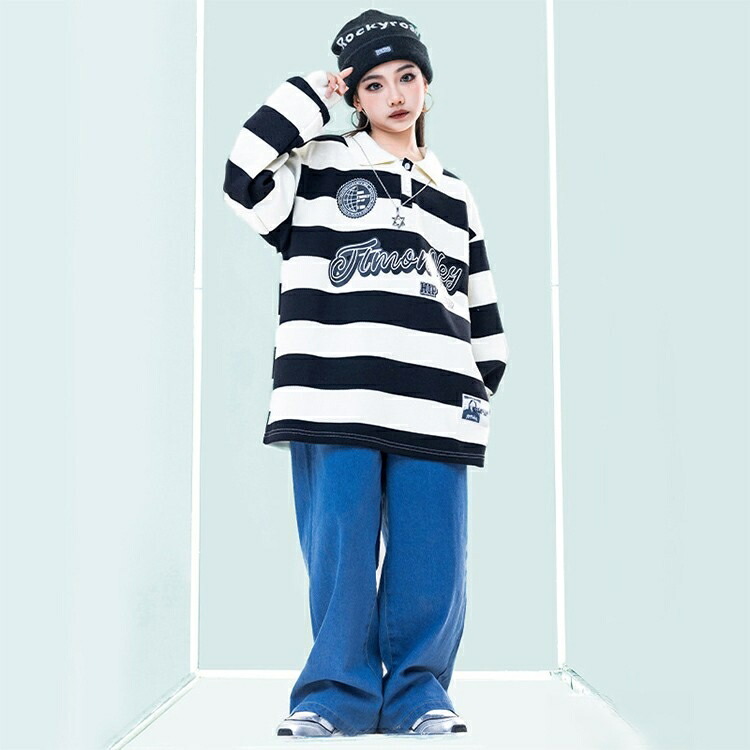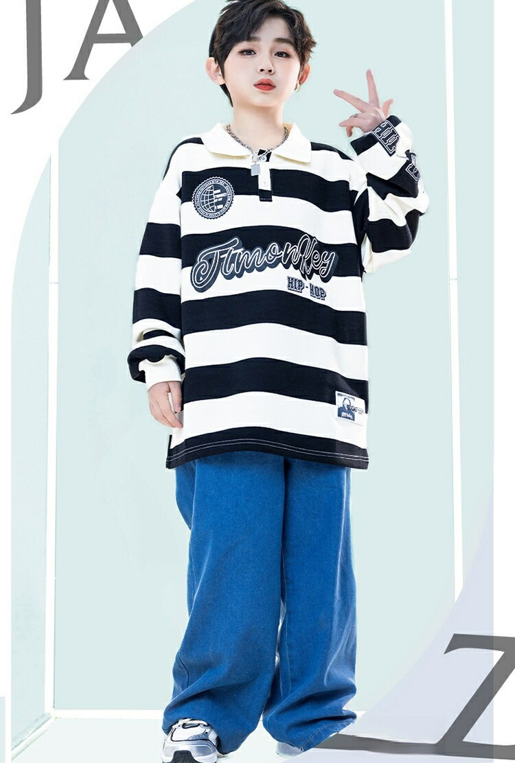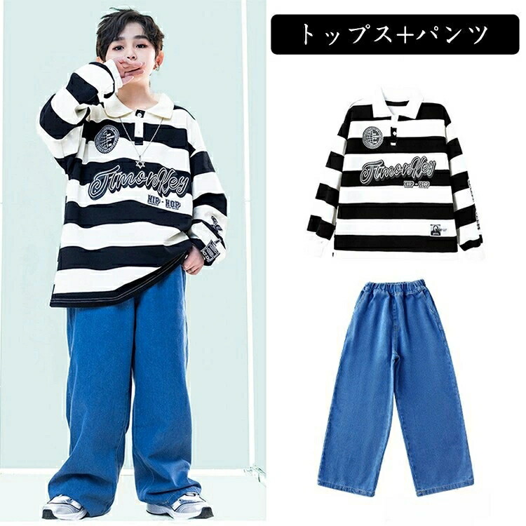 ボーダー デニムパンツ キッズ ダンス
