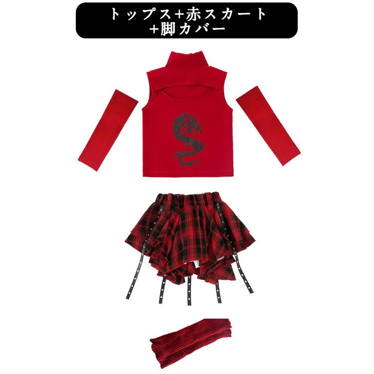 商品内容: トップスのみ パンツのみ 赤スカートのみ 黒スカートのみ トップス+パンツ トップス+赤スカート トップス+赤スカート+脚カバー トップス+黒スカート