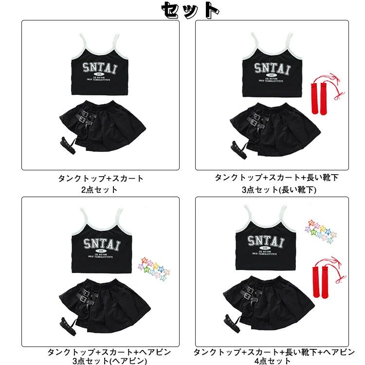 商品内容: タンクトップ+スカート 3点セット(長い靴下) 3点セット(ヘアピン) 4点セット(長い靴下+ヘアピン)