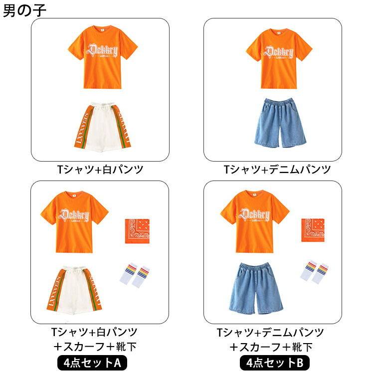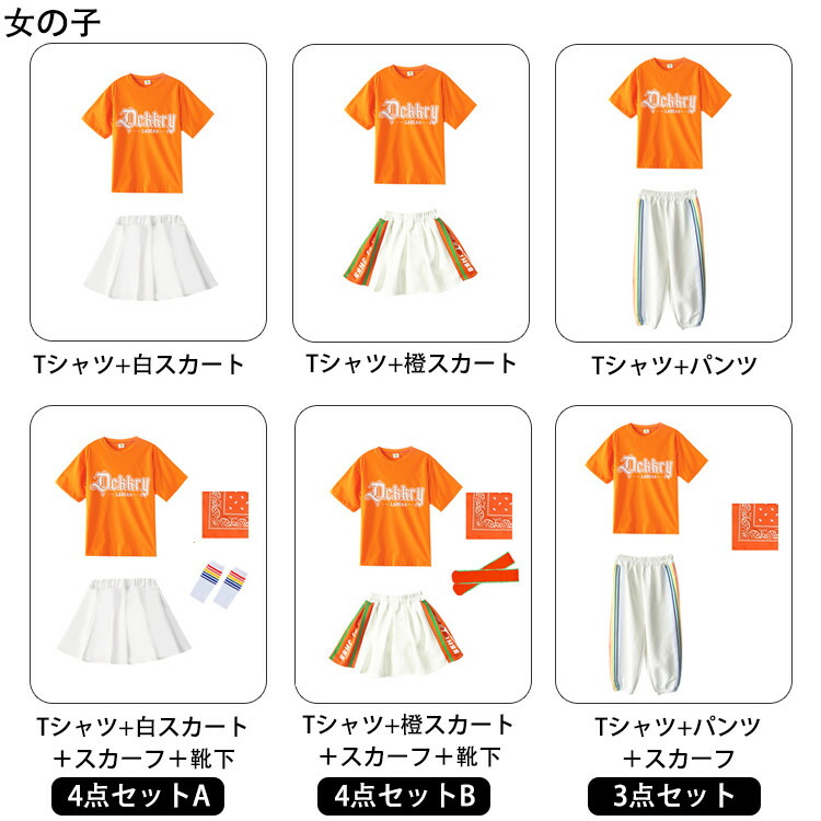 商品内容: Tシャツ+白スカート(女) Tシャツ+橙スカート(女) Tシャツ+パンツ(女) 3点セット(女) 4点セットA(女) 4点セットB(女) Tシャツ+白パンツ(男) Tシャツ+デニムパンツ(男) 4点セットA(男) 4点セットB(男)