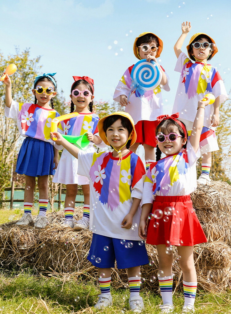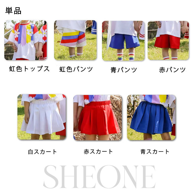 商品内容: 虹色トップスのみ 虹色パンツのみ 青パンツのみ 赤パンツのみ 青スカートのみ 赤スカートのみ 白スカートのみ 虹色トップス+虹色パンツ 虹色トップス+赤パンツ 虹色トップス+青パンツ 虹色トップス+青スカート 虹色トップス+赤スカート 虹色トップス+白スカート