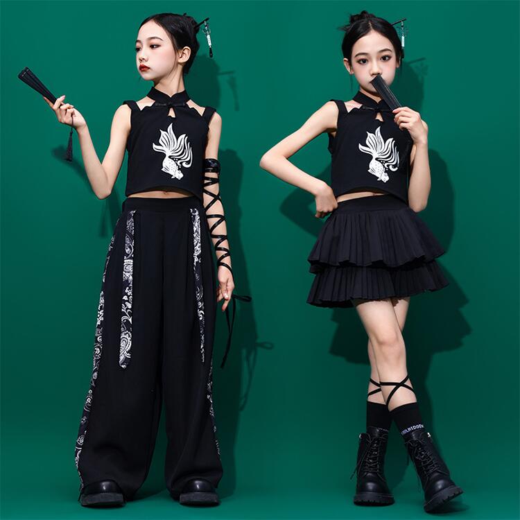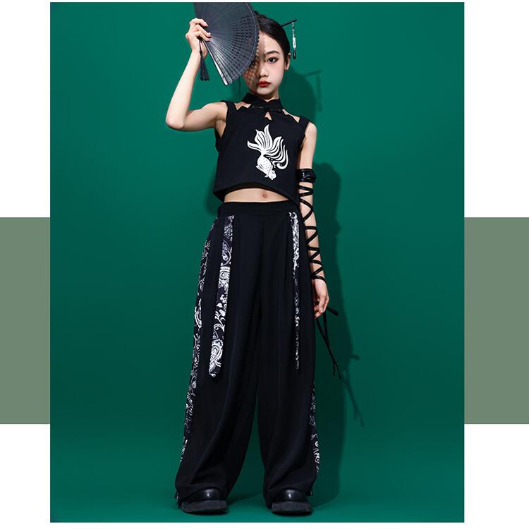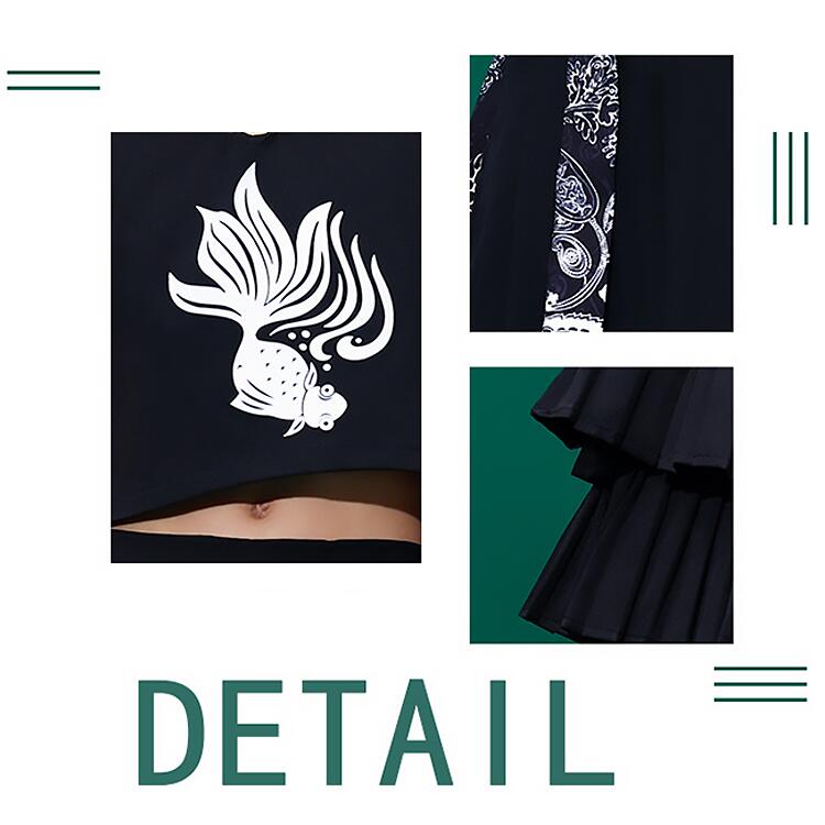 黒 和風 チャイナ風 浮世絵 へそ出し