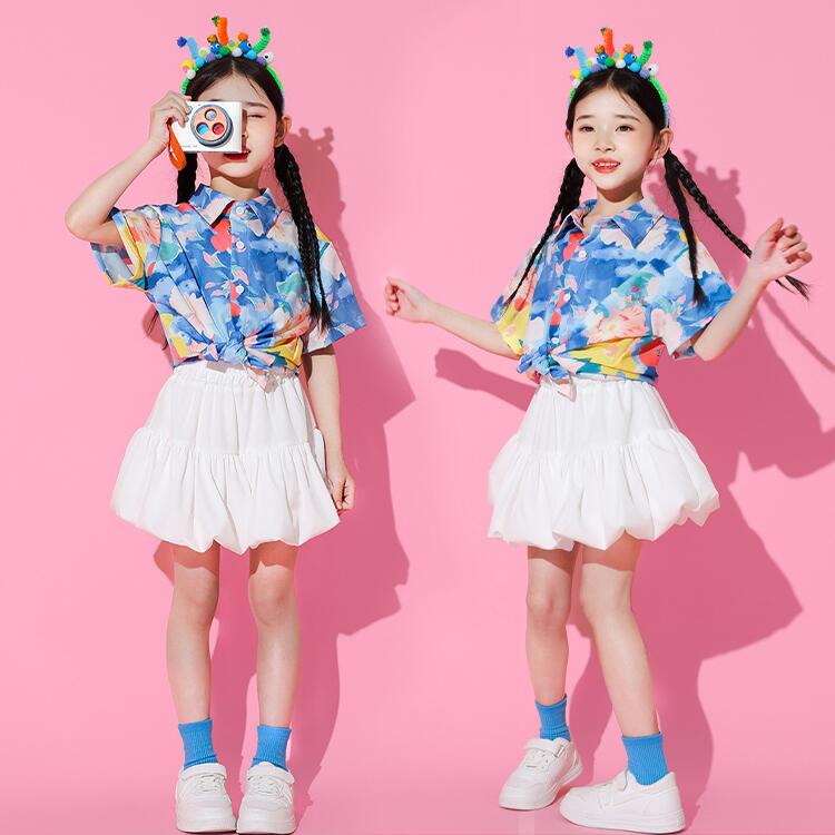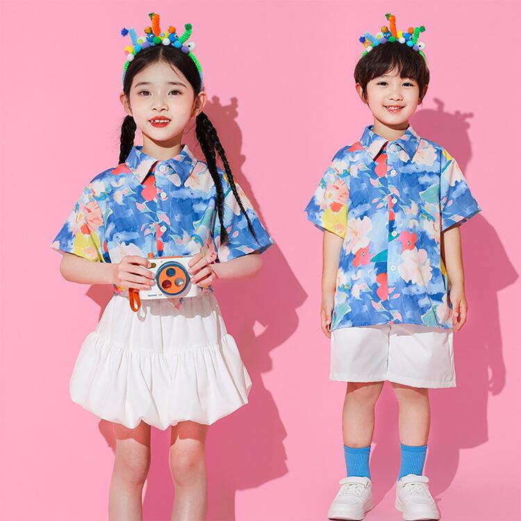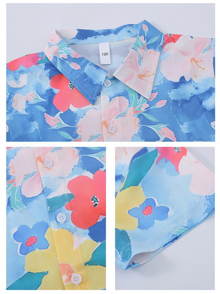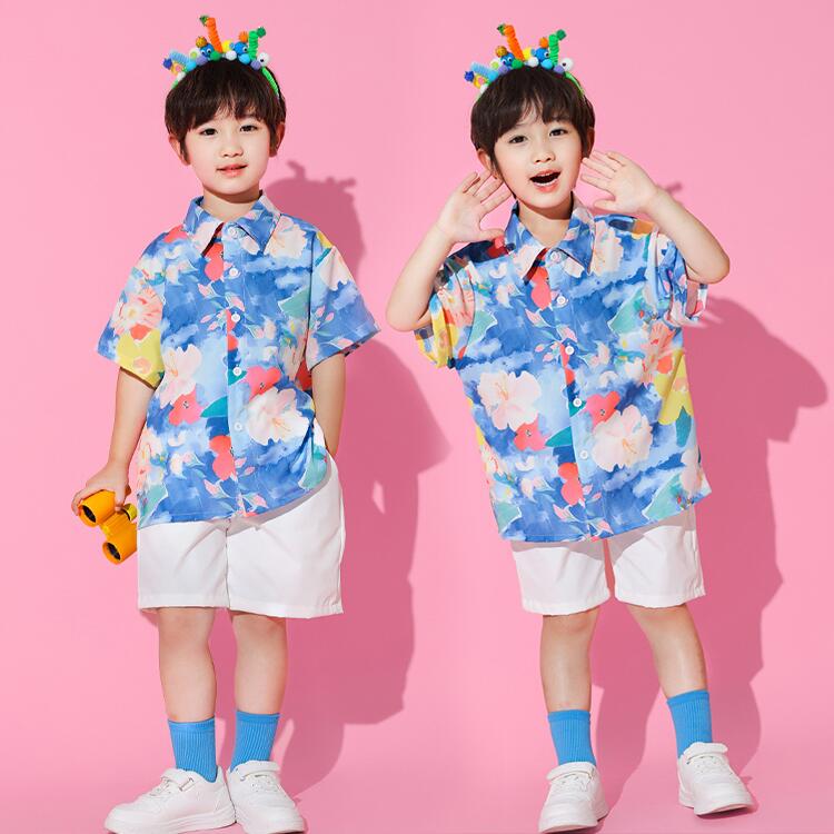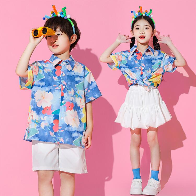 青 柄シャツ オーバーオール キッズ