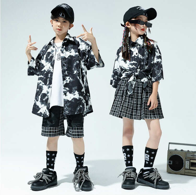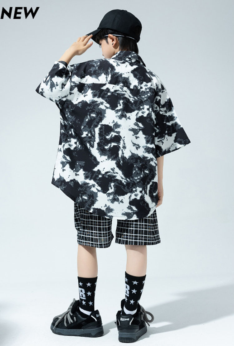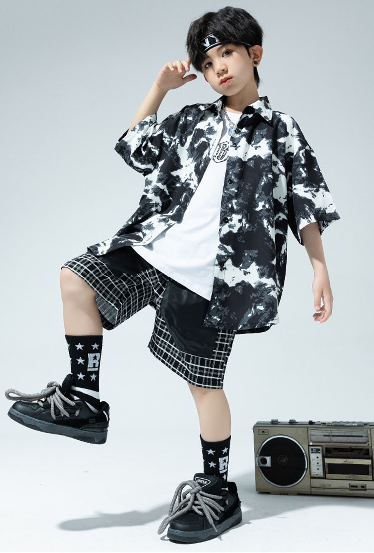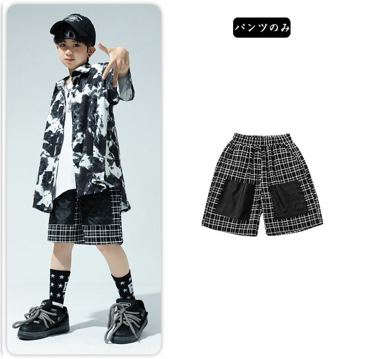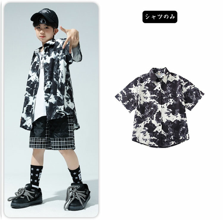 黒 総柄 柄シャツ 短パン 半袖 キッ