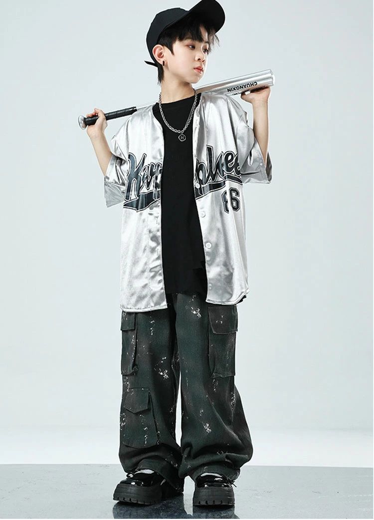 シルバー ベースボールシャツ カーゴパ
