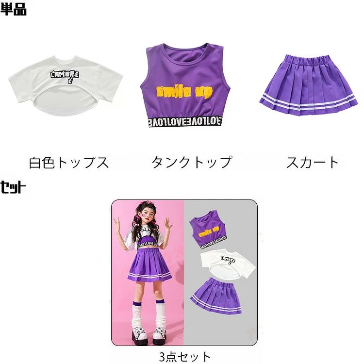 商品内容: 白色短トップのみ 紫色タンクトップのみ スカートのみ 3点セット