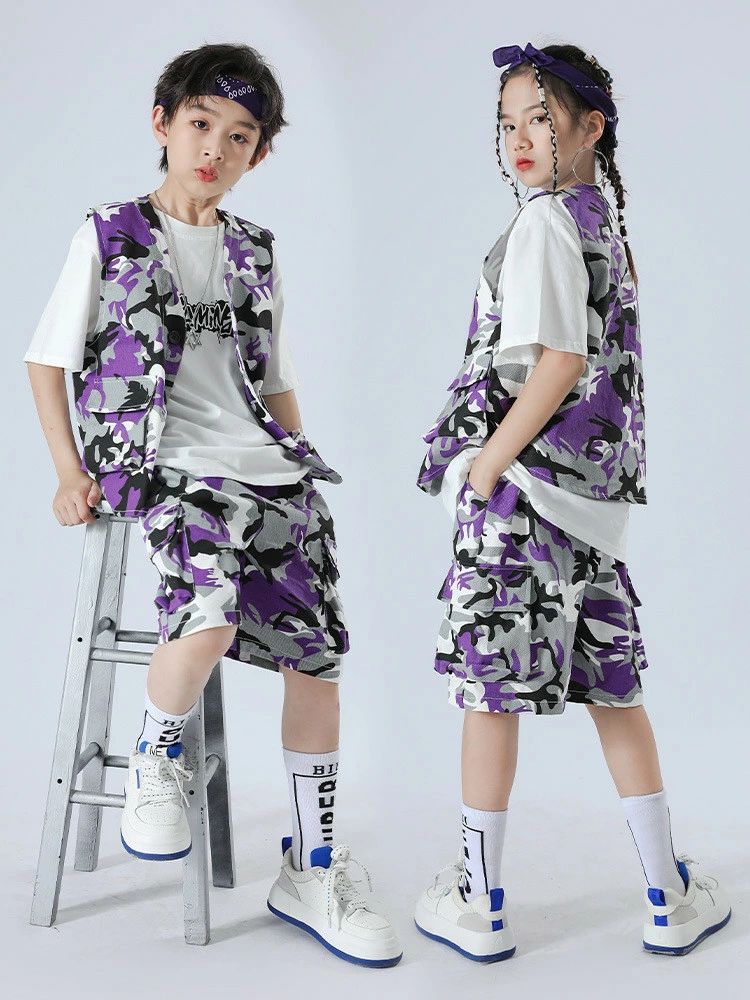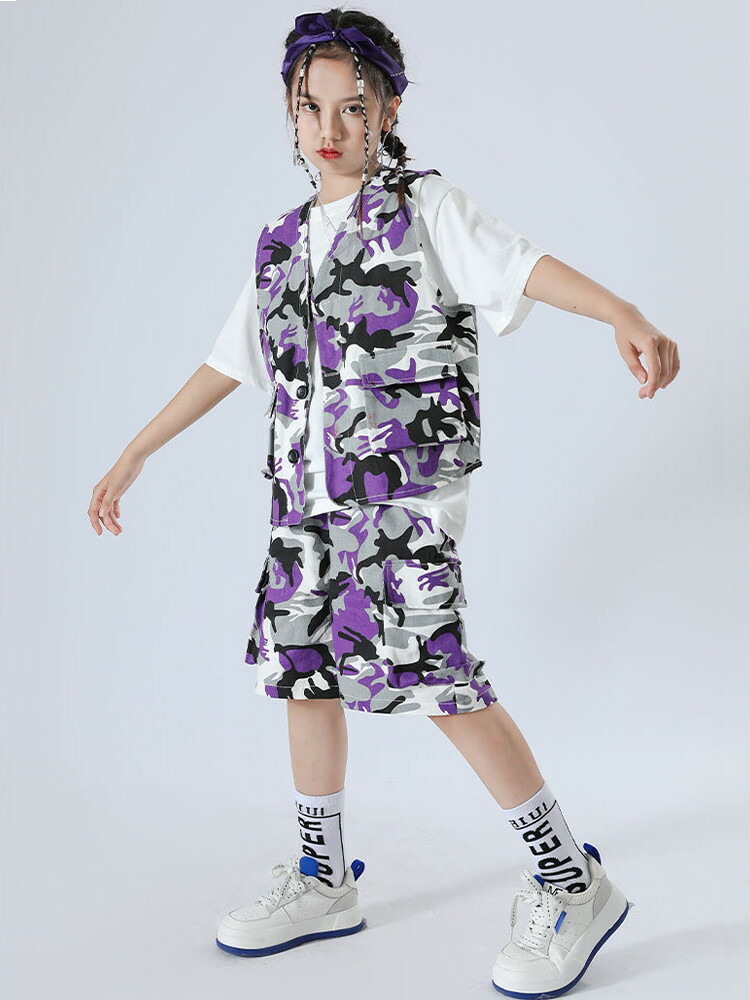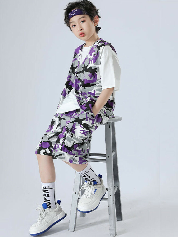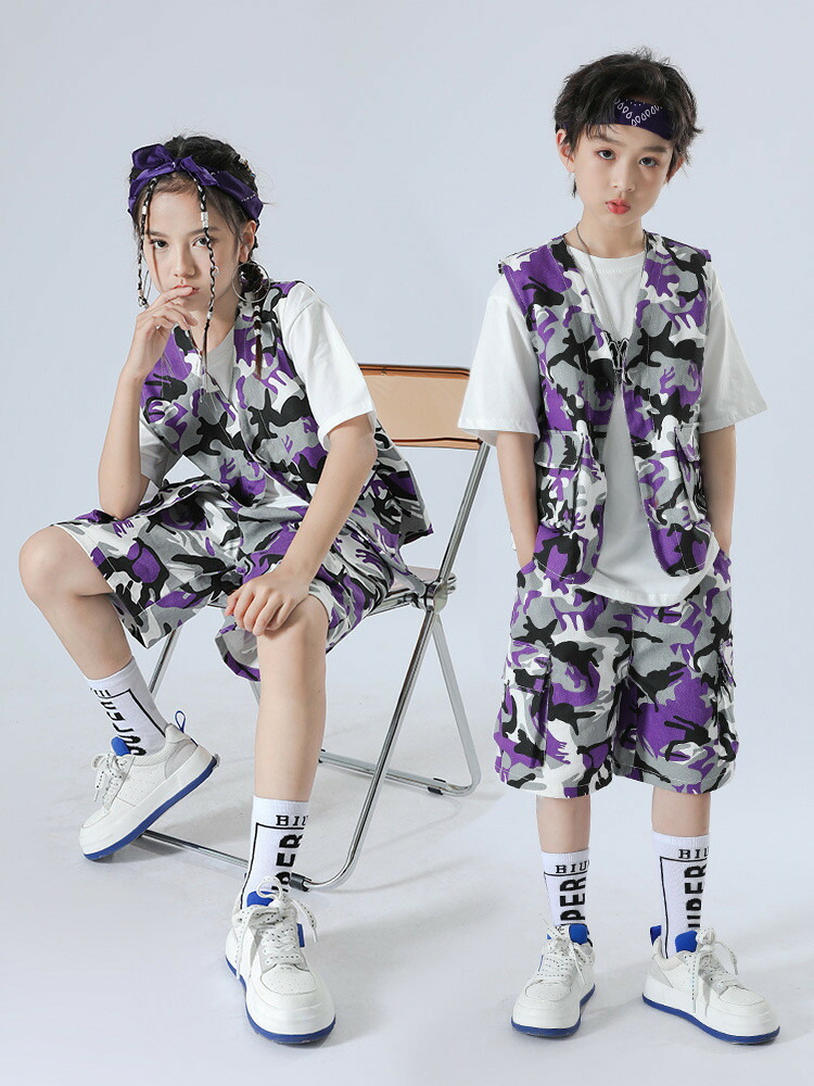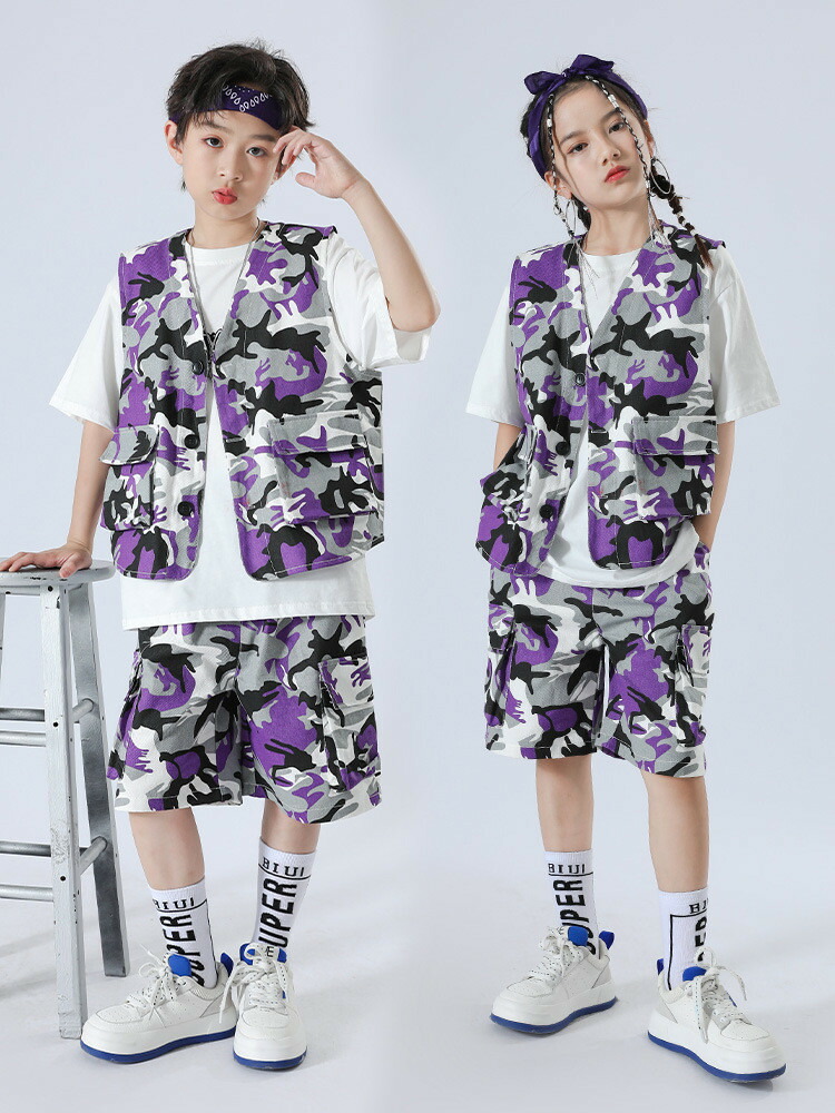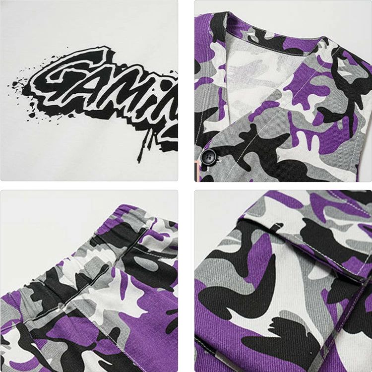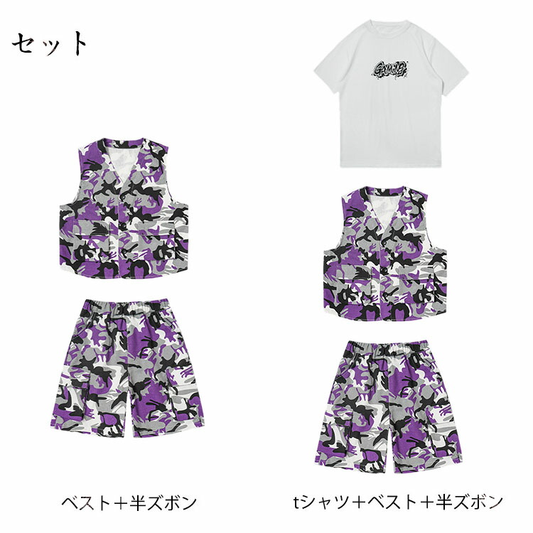 迷彩柄 パープル ベスト 半ズボン 迷