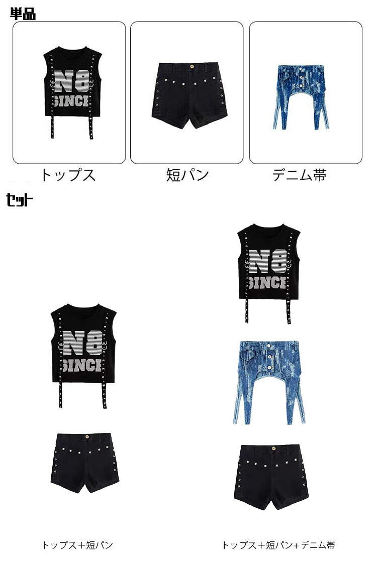 商品内容: トップス 短パン デニム帯 トップス+短パン ベスト+短パン+デニム帯