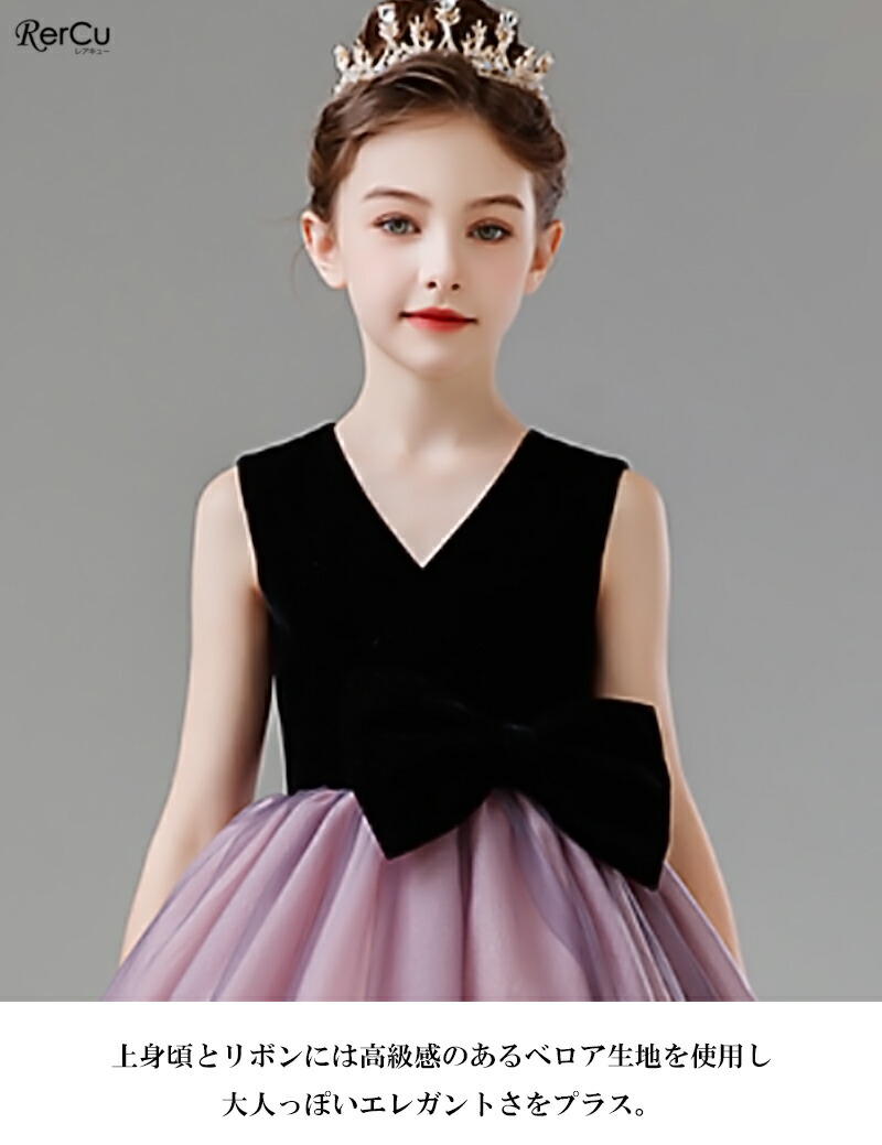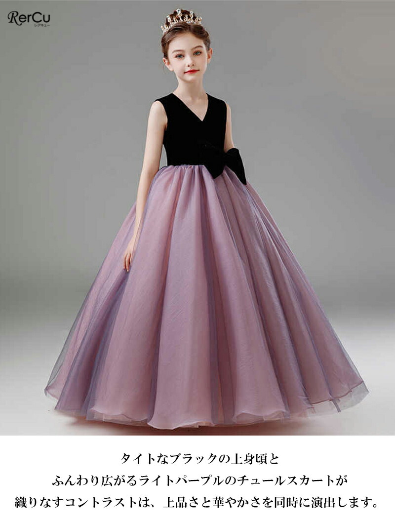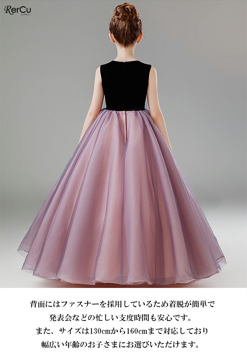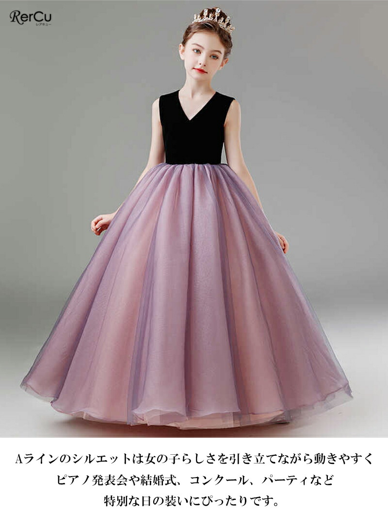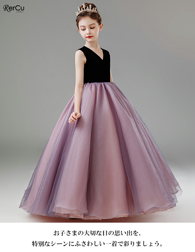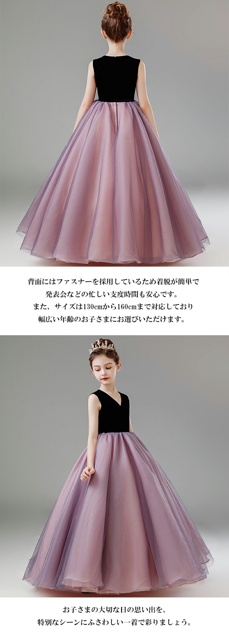 ドレス 発表会 子供 ロング丈 キッズ キッズドレス ジュニア 女の子 ロング コンクール ドレス 結婚式 キッズ こども フォーマル ノースリーブ 無地 ピアノ発表会 ジュニアロング キッズ 子ども パープル 120 130cm 140 150センチ 160cm チュール ベロア プリンセスライン