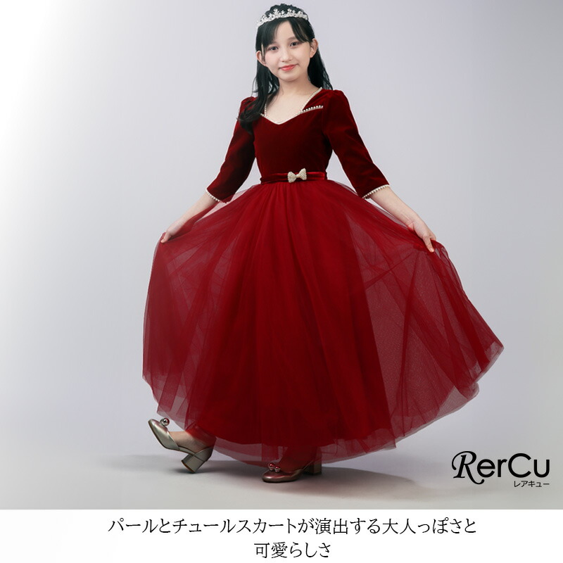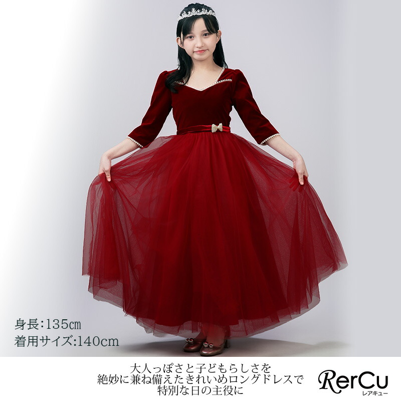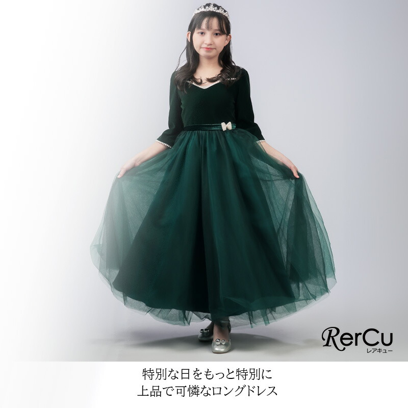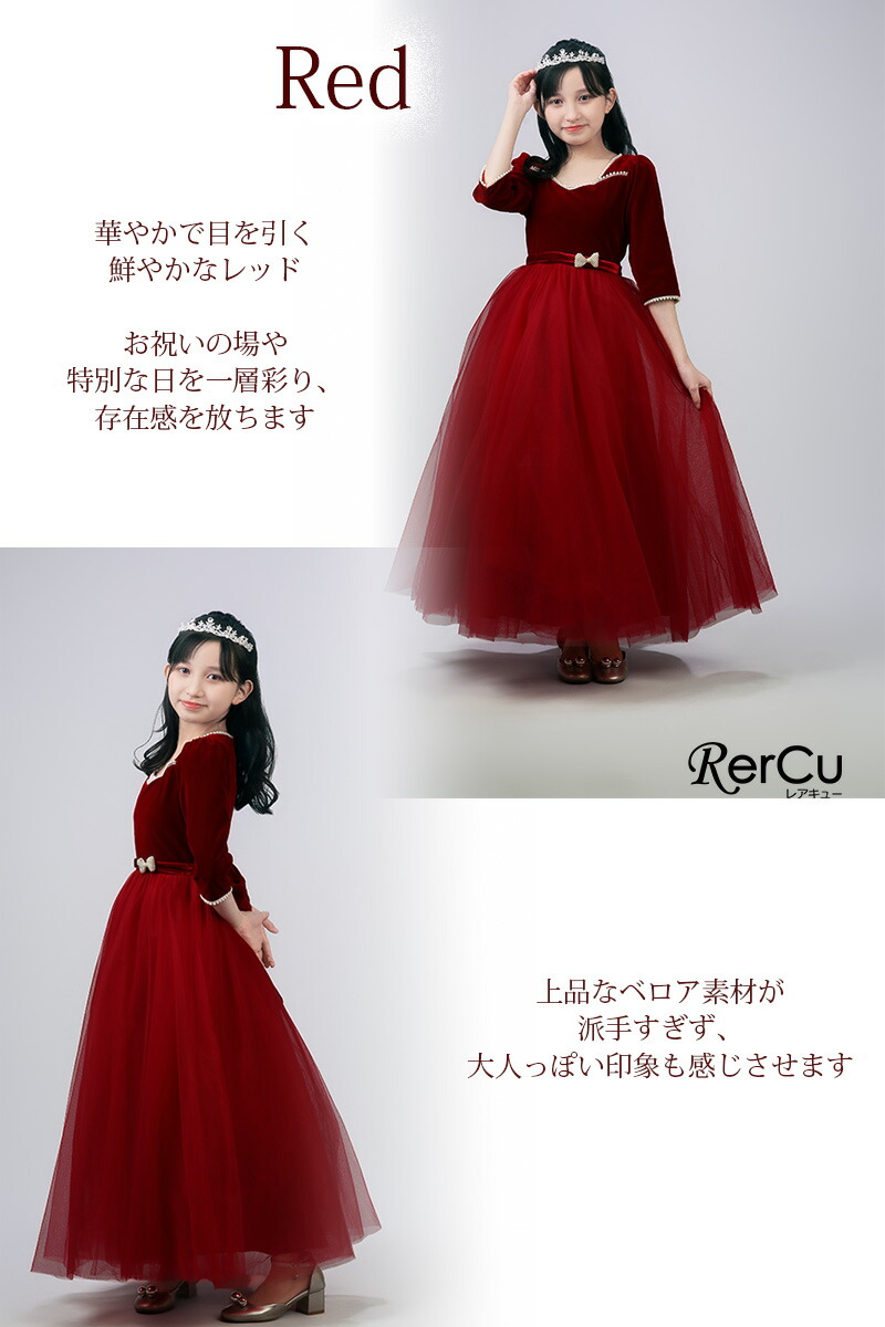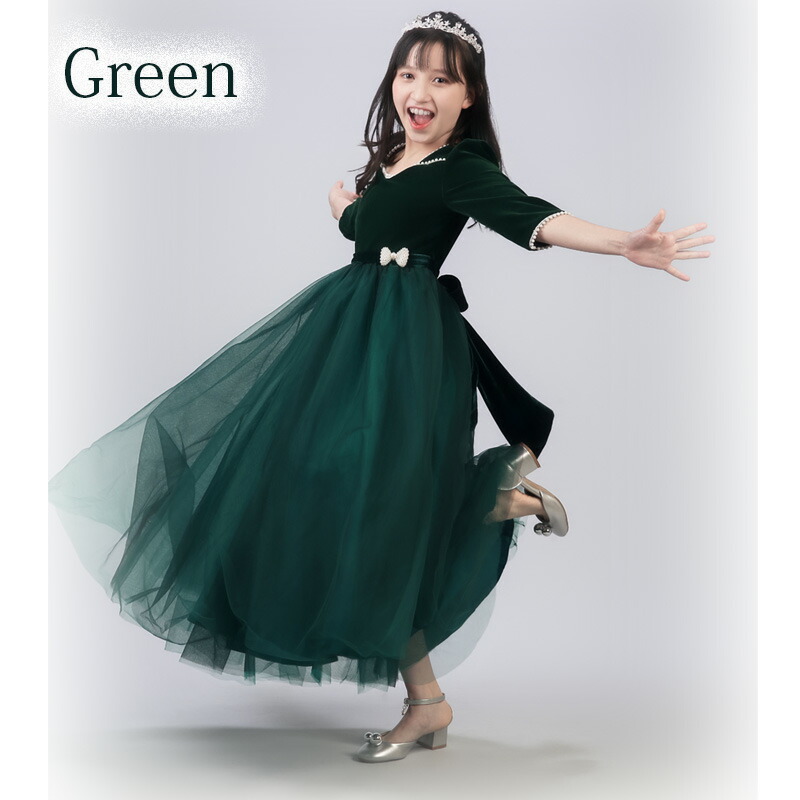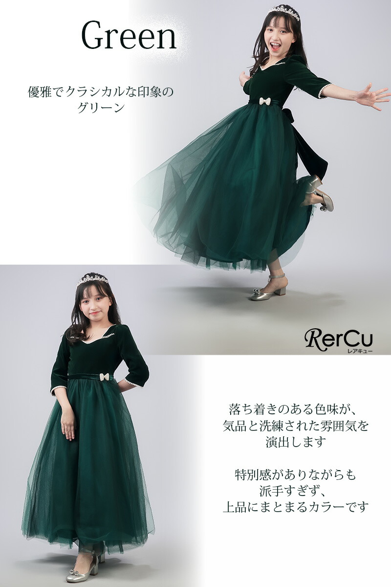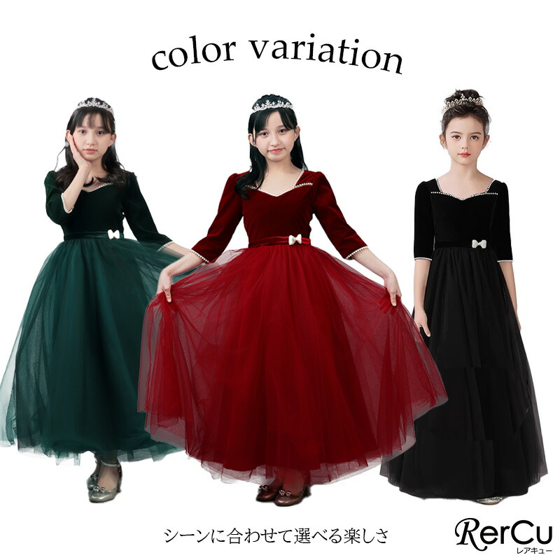 子どもドレス 高級 子供ドレス 紺 緑 ピアノ発表会 ドレス ジュニア 子供ドレス ロング レッド グリーン ベロア 結婚式 キッズドレス フォーマル 女の子 ロング丈 160 150 140 130 120 子ども こども コンクール ワンピース 子供服 ジュニア