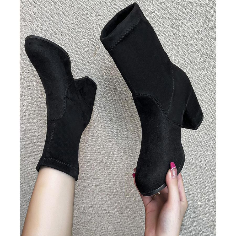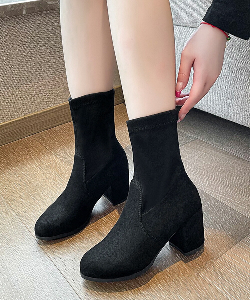 スエード調ショートブーツ 太ヒールブー