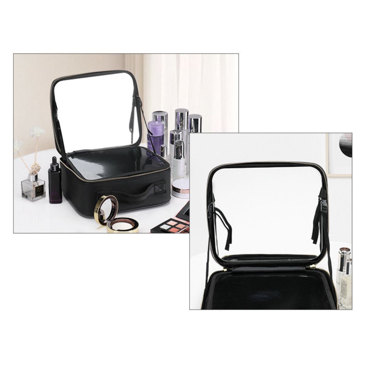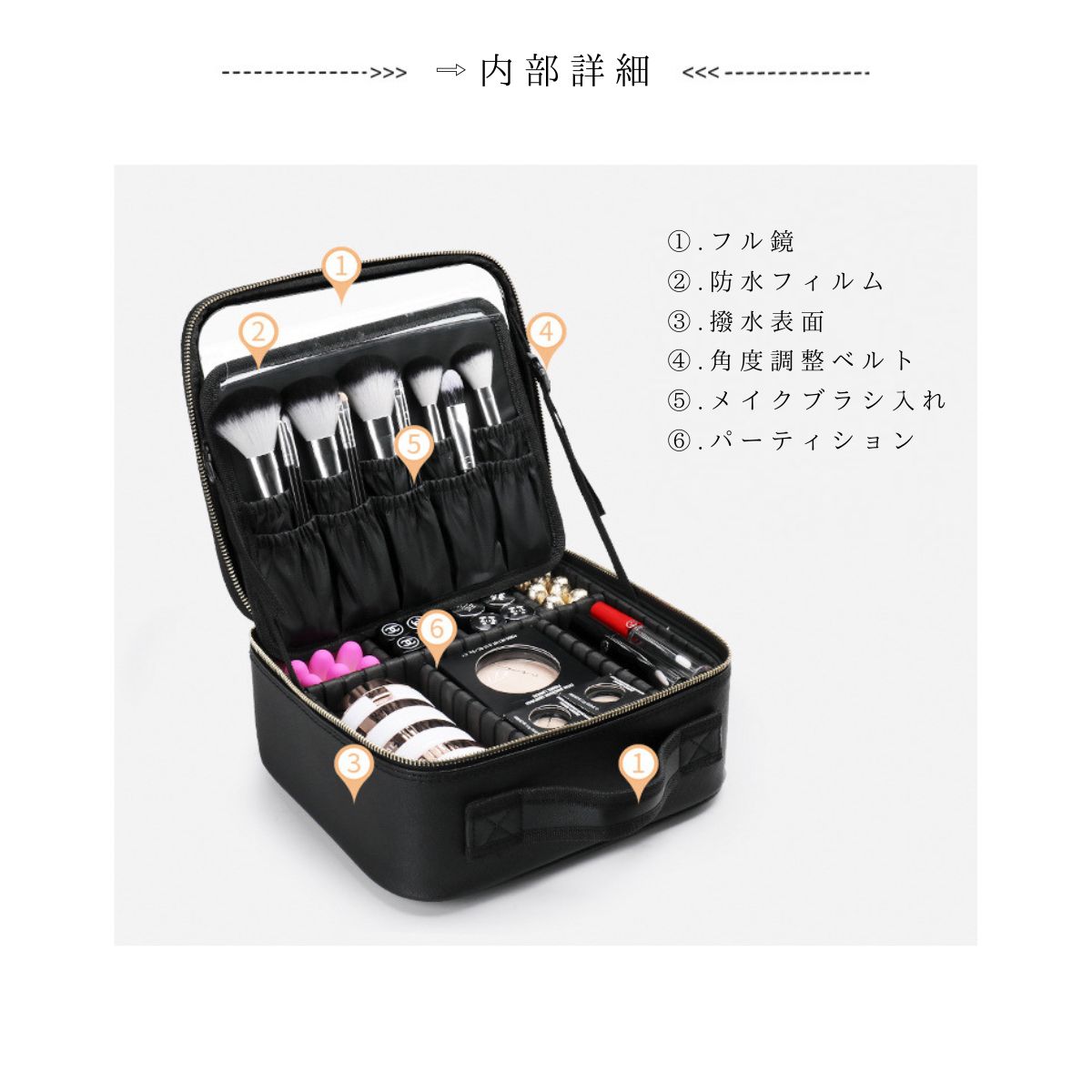 メイクボックス 大容量 鏡付き ミラー付き コスメボックス 化粧品 ケース コスメケース 化粧ボックス 化粧箱 化粧品 メイク コスメ 収納 化粧品入れ バニティケース バニティバッグ 仕切り レザー 防水 おしゃれ 持ち運び 旅行 ブラック ホワイト ピンク