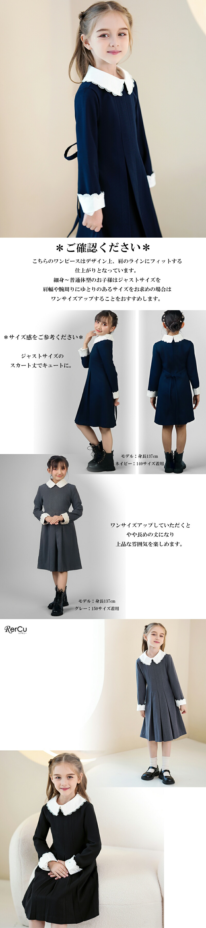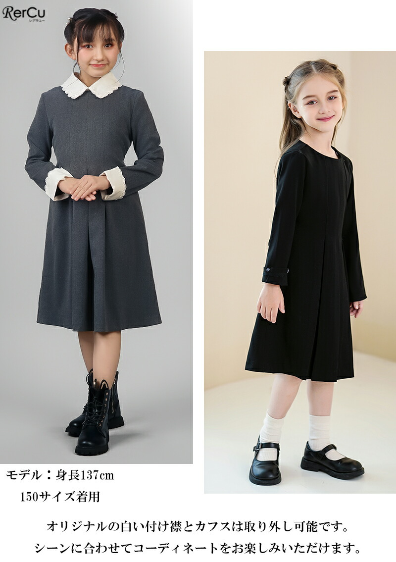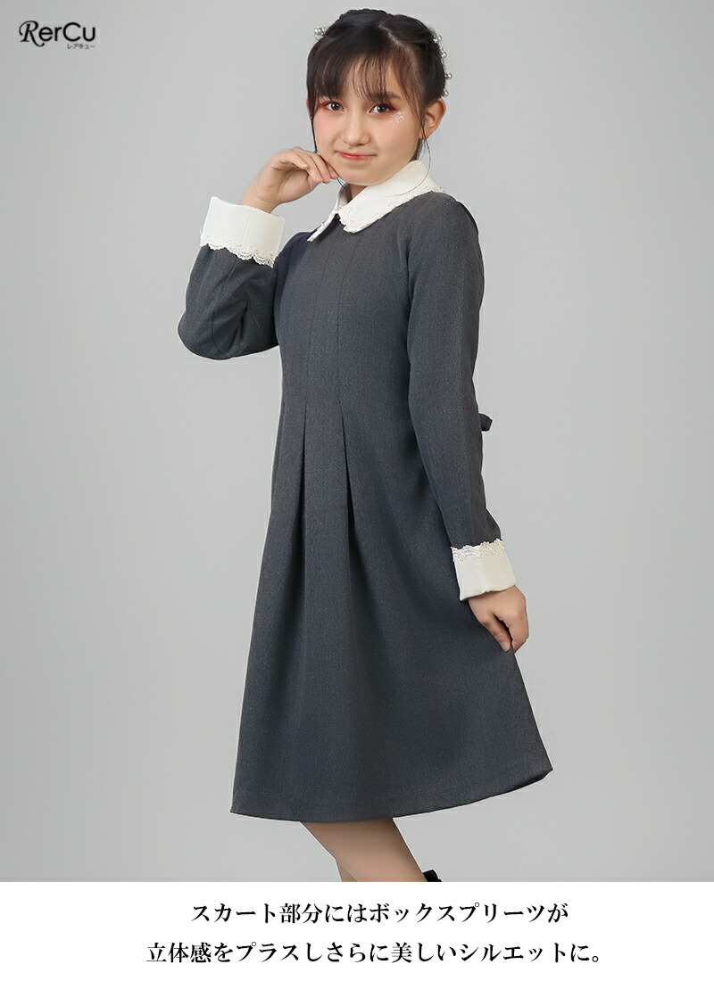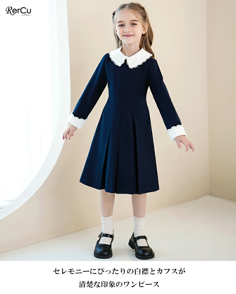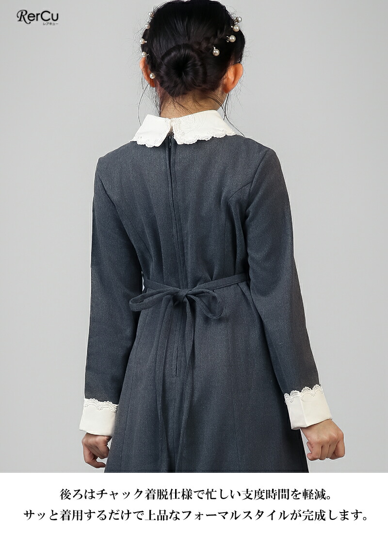 セレモニーにぴったりの白襟とカフスが清楚な印象のワンピース