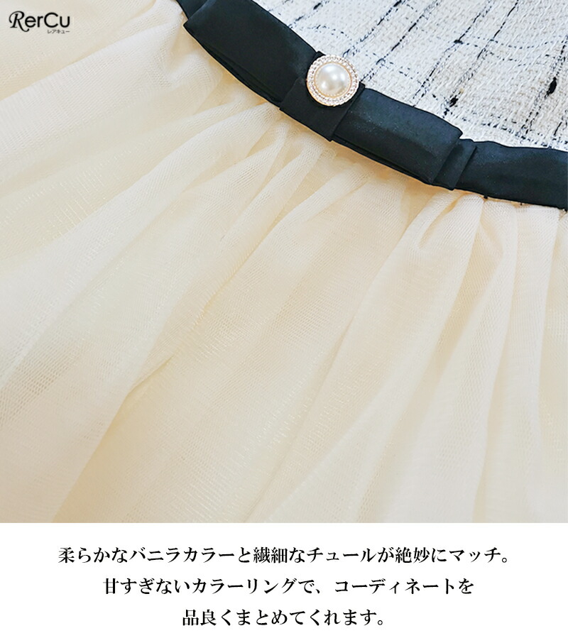ウエストのブラックリボンがソフトな雰囲気を引き締めてくれます。