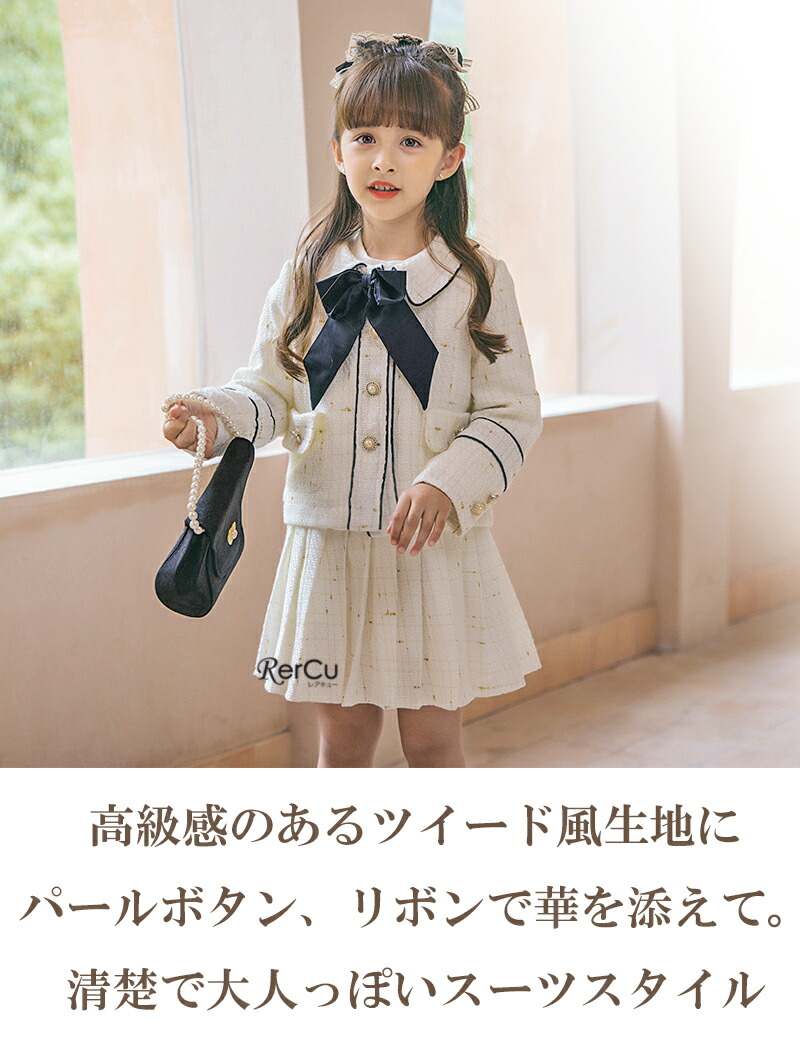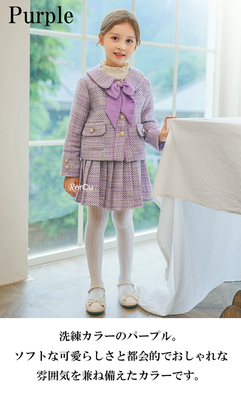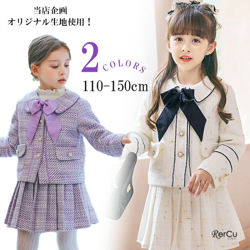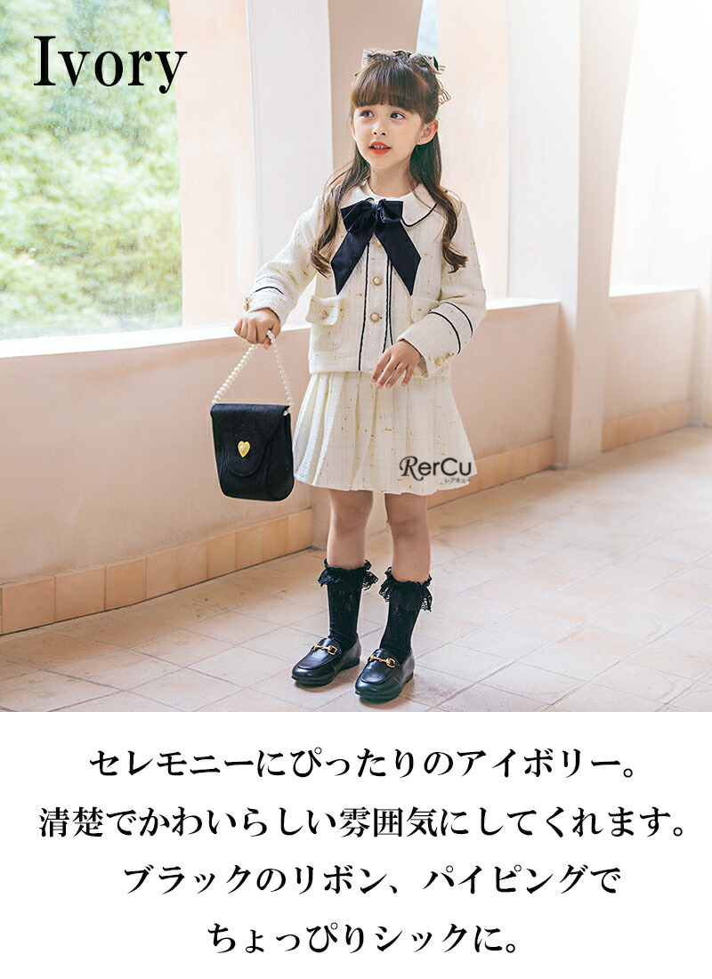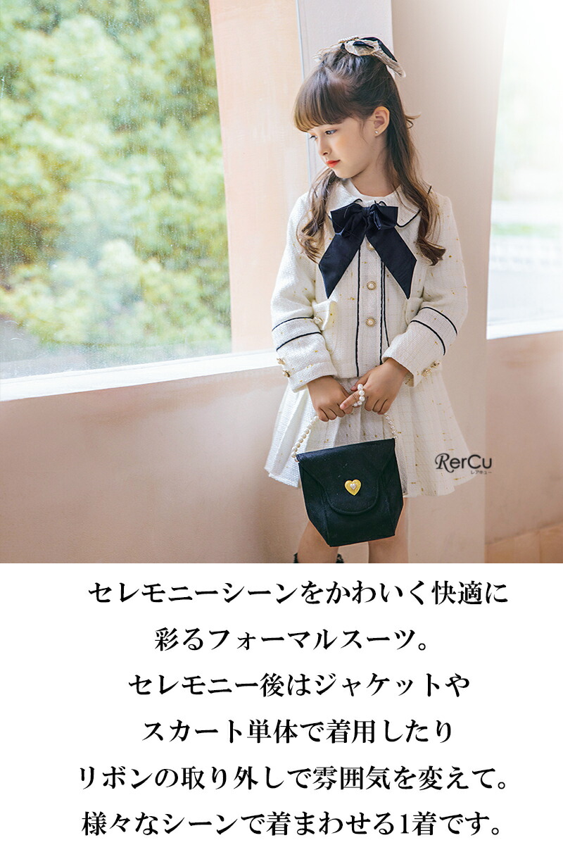 即納 入学式 スーツ 女の子 130 入学式 スーツ 女の子 120 卒園式 子供服 卒園 110 120 130 cm 3点セット ジャケット スカート キッズ フォーマル 子供 スーツ 白 黒 パープル ホワイト ブラック 卒園式 結婚式 七五三 撮影 発表会 リボン 子ども 入園 アイボリー ドレス