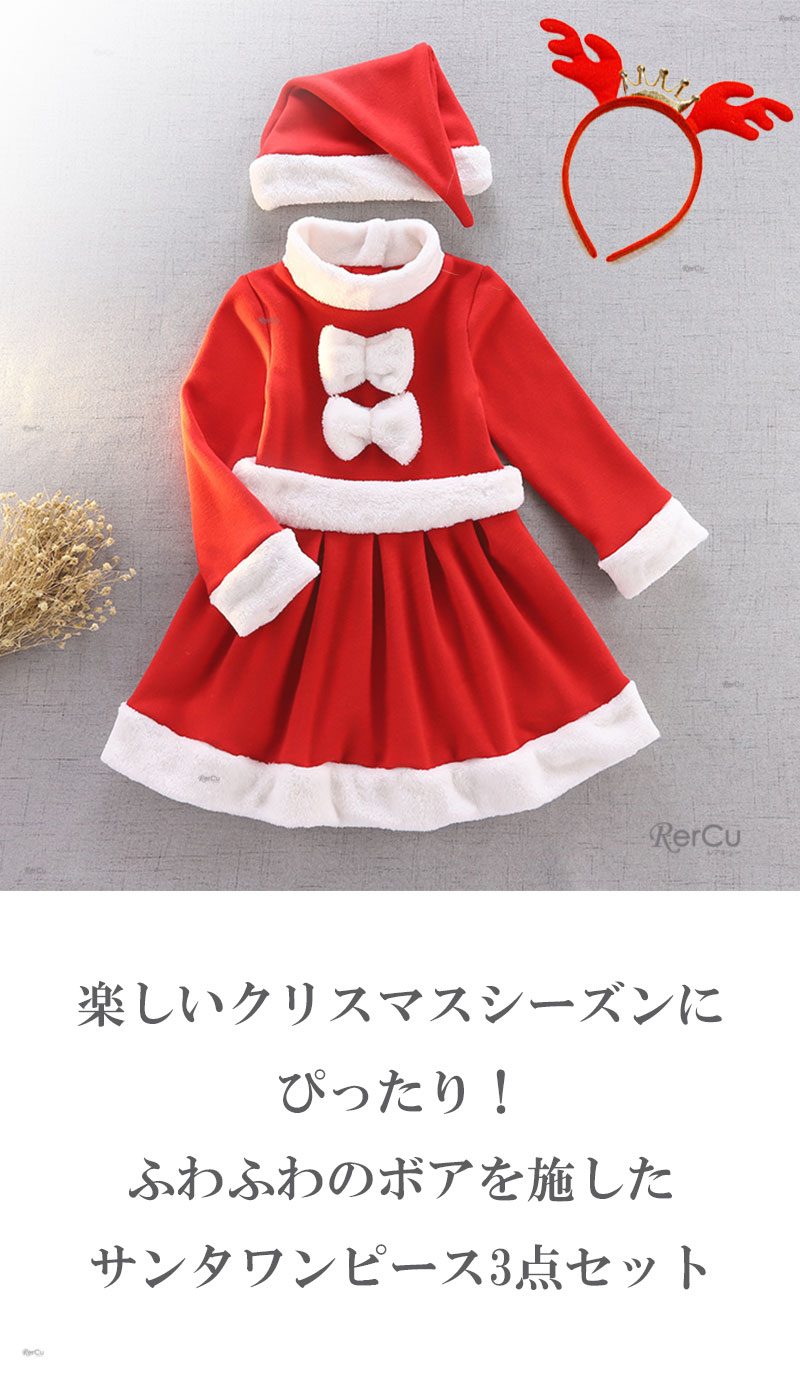 ワンピース 帽子 カチューシャの3点セット クリスマスコスチューム クリスマスコスプレ サンタ衣装 コスプレ衣装 サンタコスチューム