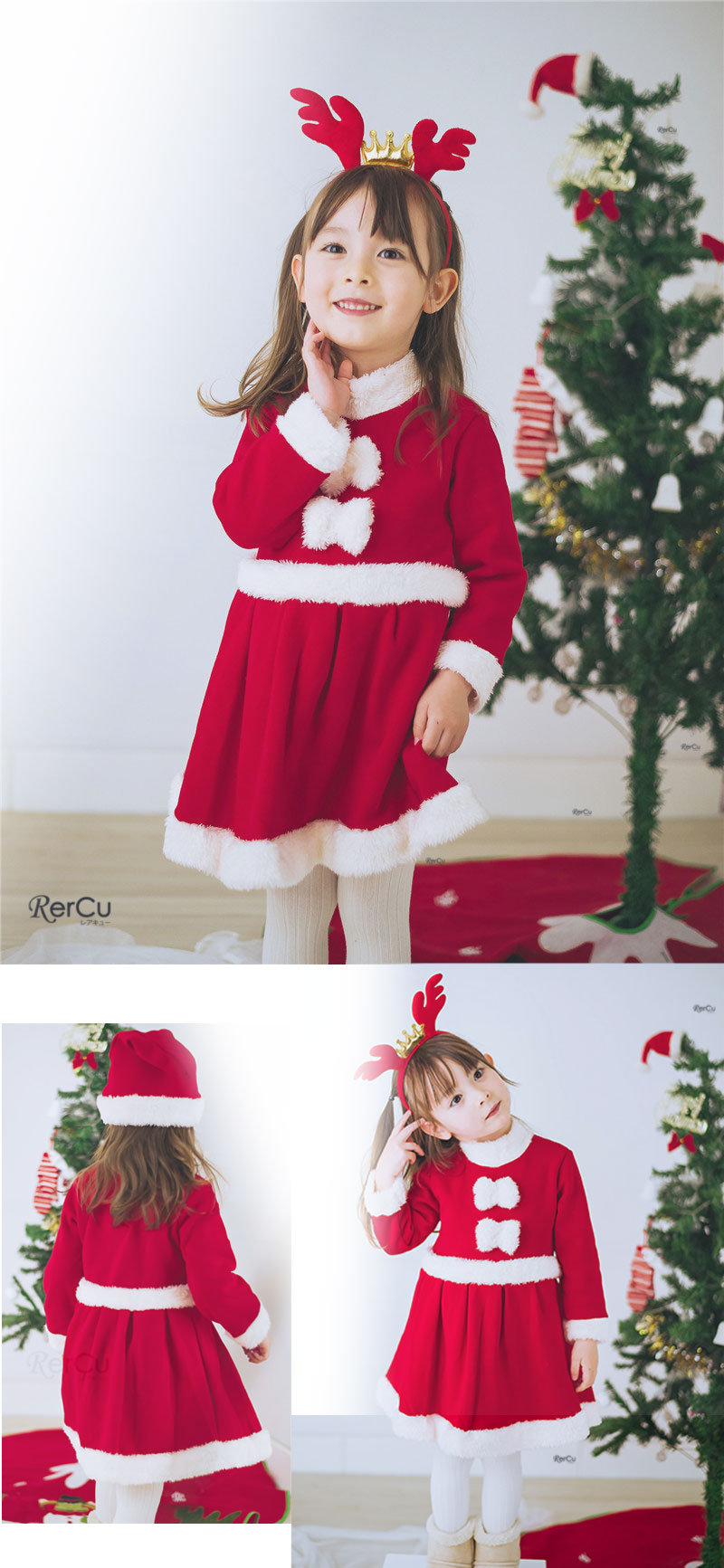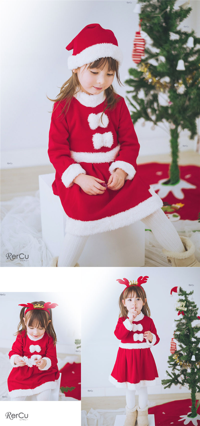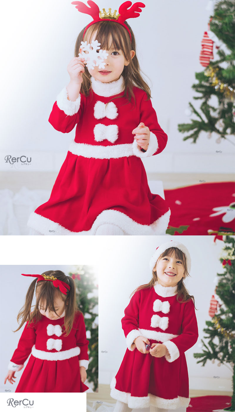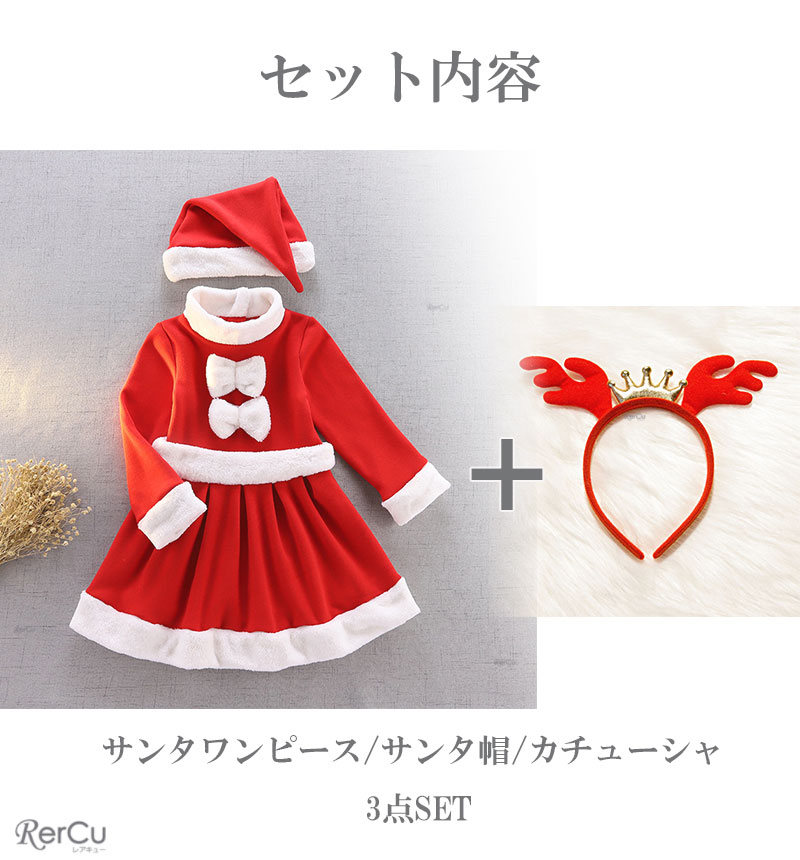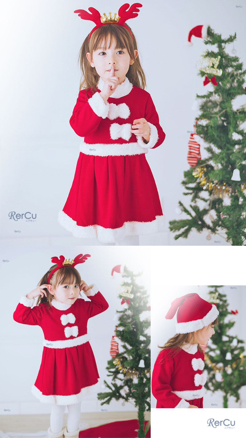 サンタクロースのワンピース、サンタ帽、トナカイのカチューシャの