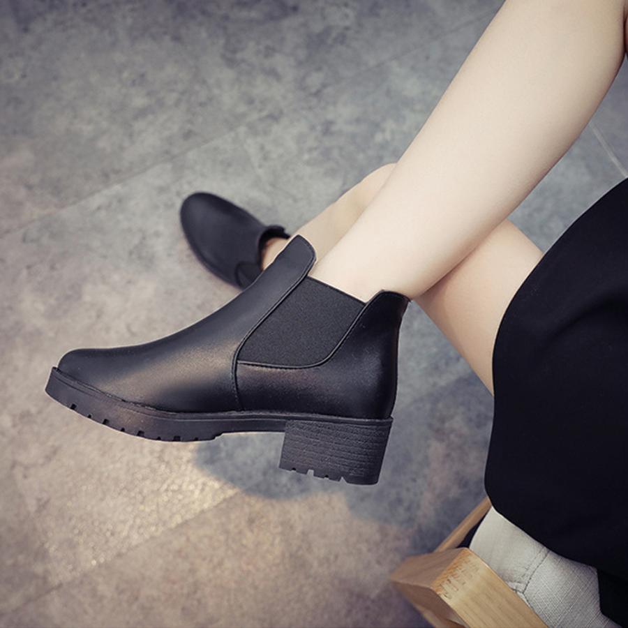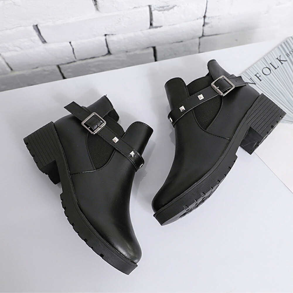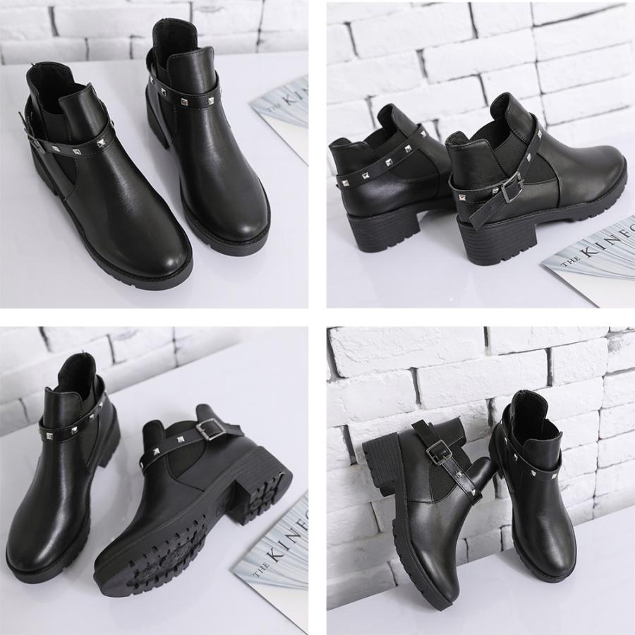 足首見せで女性らしいサイドゴアとリベットベルト付きのショートブーツ