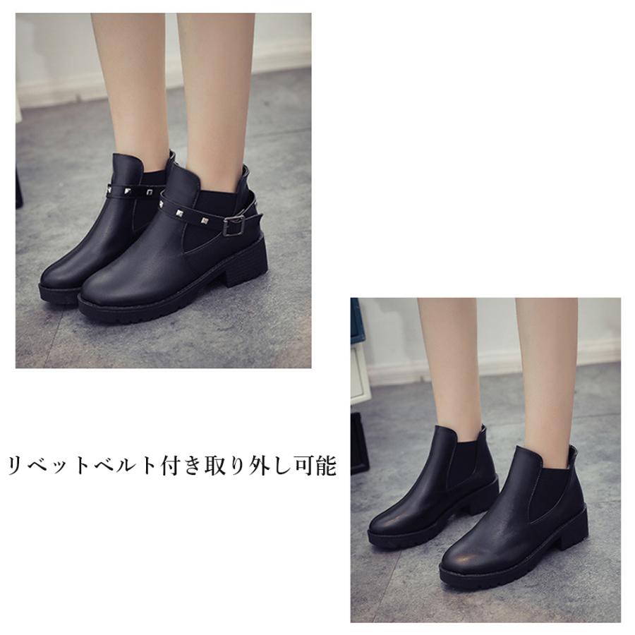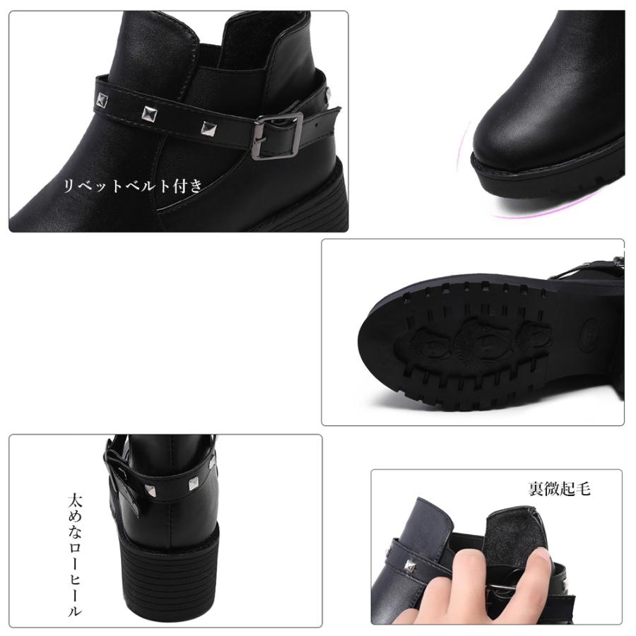 ショートブーツ レディース ローヒール ブーティ リベット付き 履きやすい 美脚ブーツ お洒落 サイドゴアブーツ 厚底