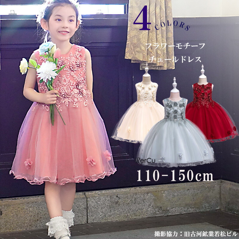 子供ドレス ドレス こども 七五三 ピアノ発表会 子どもドレス フォーマル プリンセスドレス ジュニアドレス レッド シャンパン グレー 赤 ピンク 子ども フォーマルドレス 120 130 140 150 110 花いっぱい ワインレッド