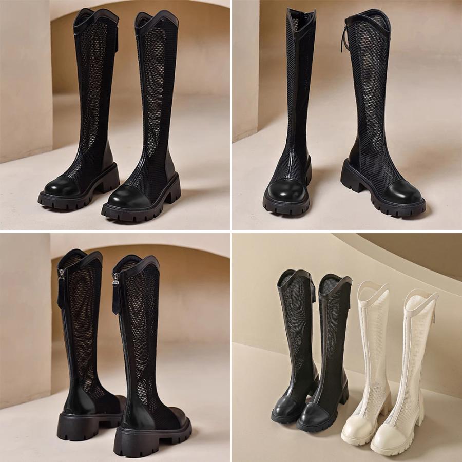 メッシュとレザーの異素材mixの韓国風サマーニーハイブーツ