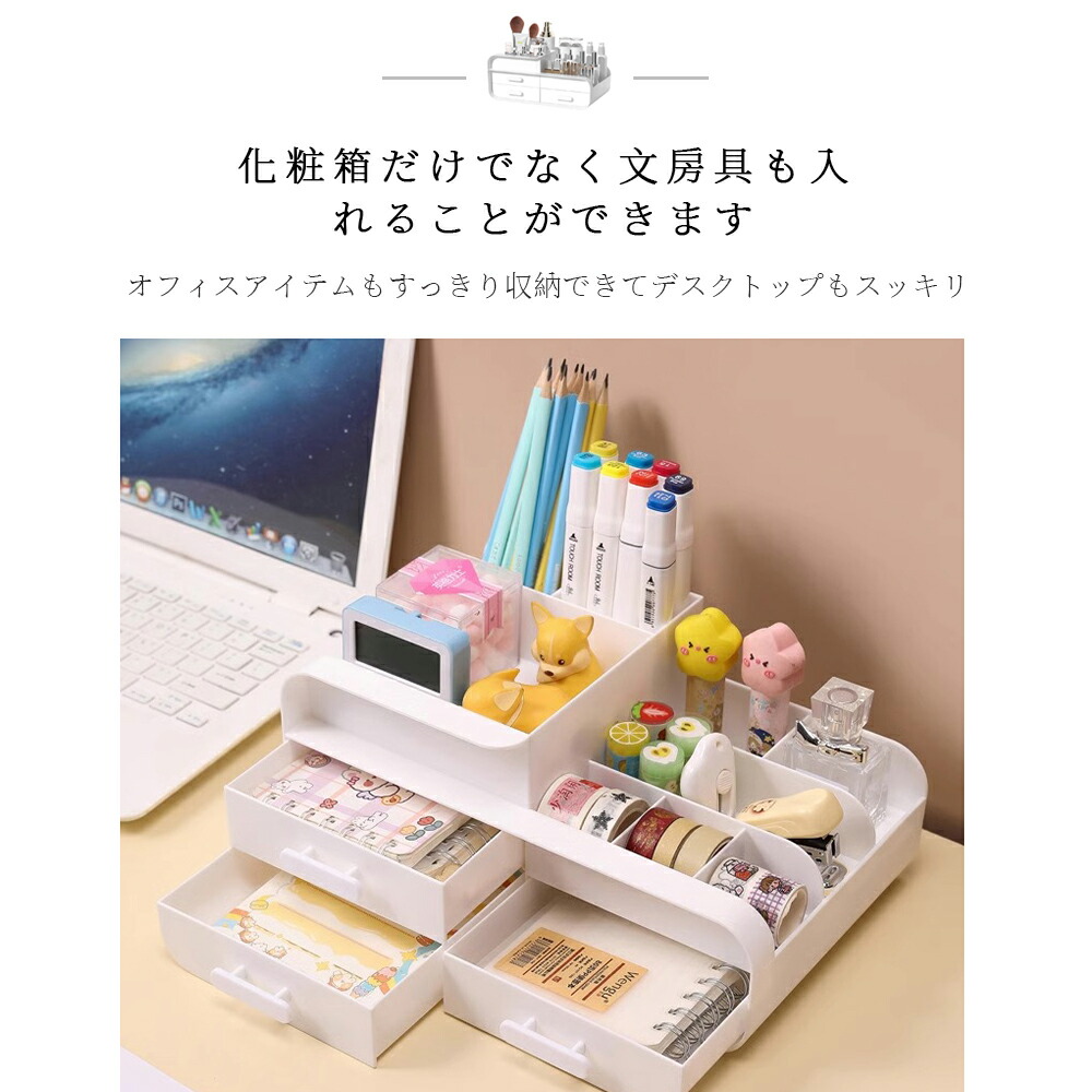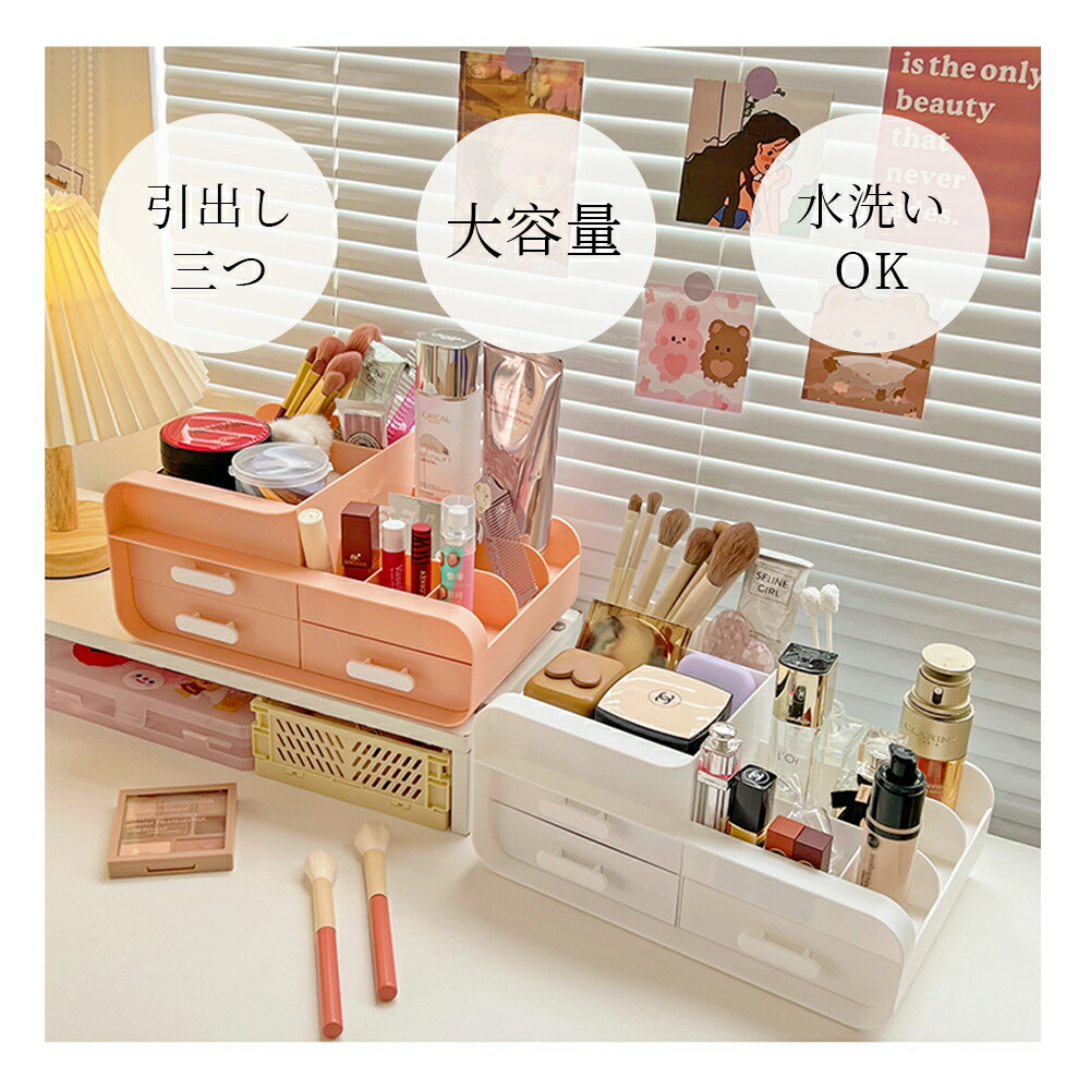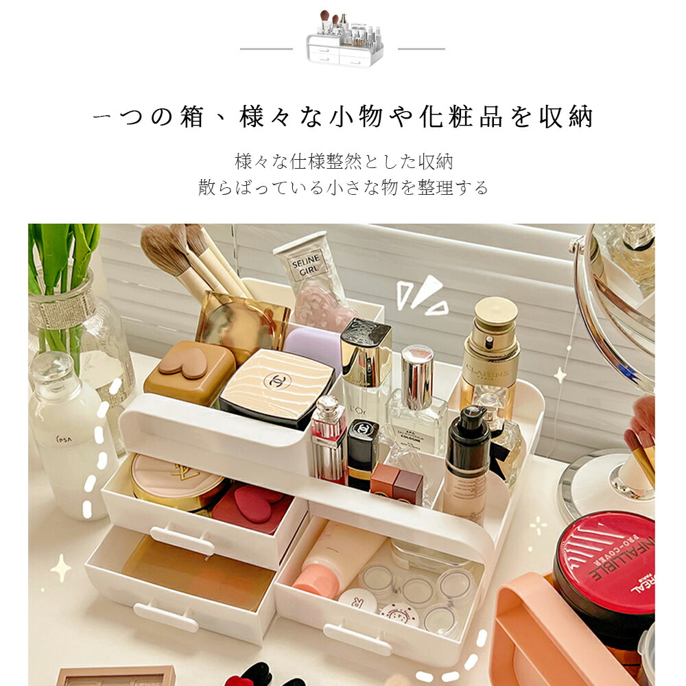 化粧ボックス コンパクト メイク 多機能 小物入れ 化粧品 収納 ボックス メイクボックス 可愛い可愛い 引き出し 可愛い 卓上 引出し三つ 収納 おしゃれ 省スペース メイク道具 雑貨 コスメ 文房