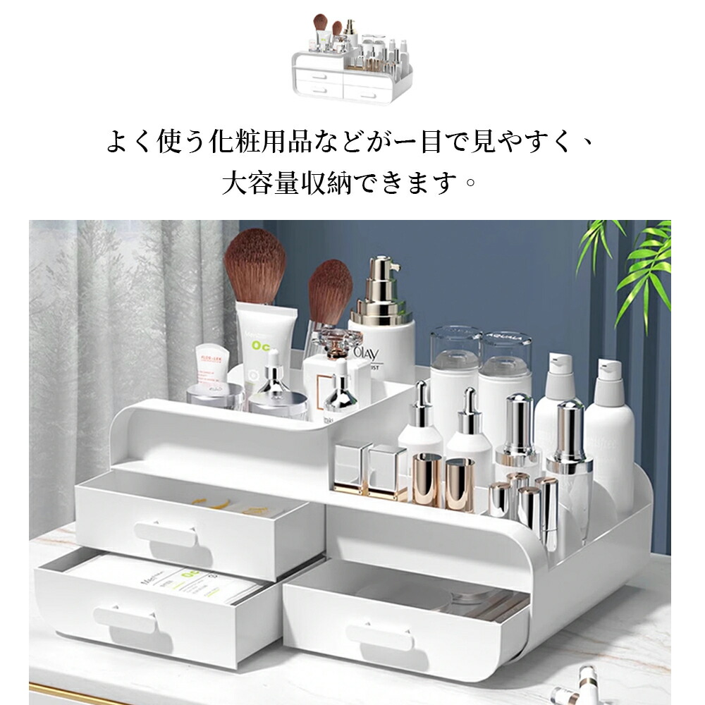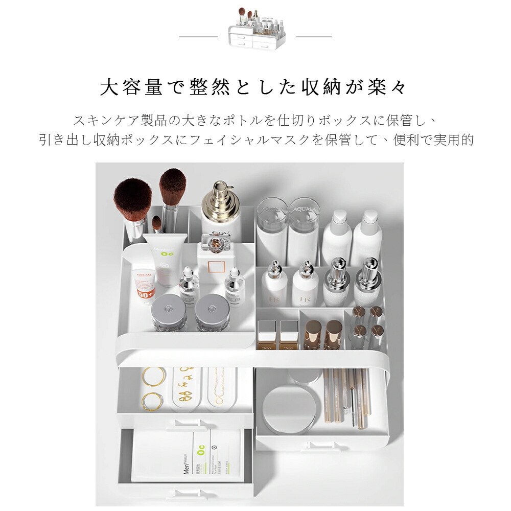 【大容量収納力抜群】収納後の中身が一目瞭然、整理しやすくて忙しい朝もメイクグッズがサッと取り出しやすいから、メイクアップの時短が叶います。 【整理整頓に便利】右側には仕切りが付き、化粧水や乳液などの化粧品が立てたまま入るスタンド収納できます。 【高品質プラスチック】強度が高く、耐久性にも優れています。底部のメッシュ設計で、汚れた場合は簡単に水洗いでOK♪軽量なので移動が楽々! 【卓上収納にも適用】化粧品収納以外、リモコン、携帯電話、眼鏡、文房具、鍵、財布などいろいろな小物収納できます。 【シンプルなデザイン】シンプルなデザインなので、どんなシーンでも使用できます。書斎、机、寝室、居間、オフィスなどにおすすめ。