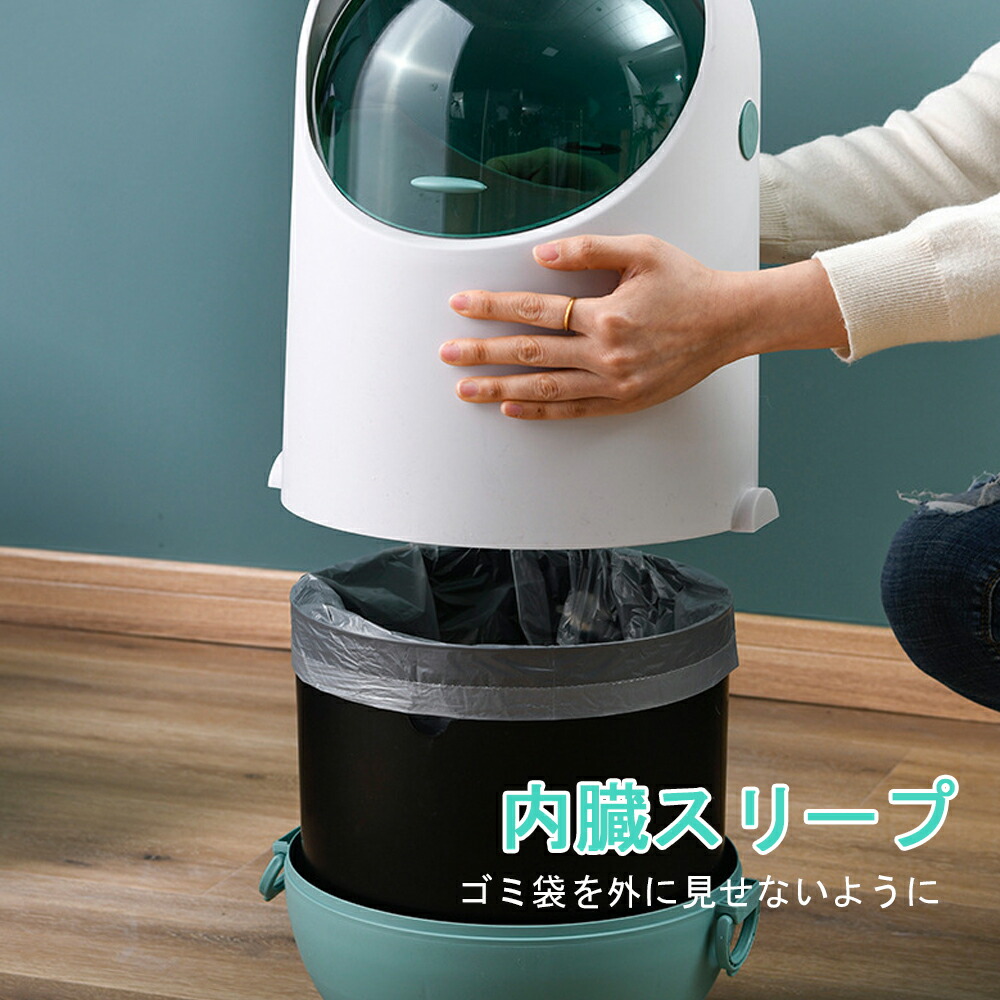 【省スペースで置きやすい】フタが上下に開閉しないので、上部が狭い所でも置くことが可能です。デスクの下や、扉の中に収納することも可能で、キッチン回りなどのにもピッタリ。内側には凹凸留め具がついており、袋を分ければゴミ箱の中で、缶やビンを分別することも可能です。 【5分完成!かんたん組み立て】上下部のプレートは完成の状態でお届けします。ネジを使わないから5分で完成!各パーツをはめ込んで組み立てるだけです。ごみ袋の装着も簡単:ごみ袋を挟んで蓋内部にあるスナップでとめればセット完了です。Point:スナップをとめるには、パイプを握らず、蓋の外縁を握ることでうまくスナップをとめることができます。 【ふた付きで中身や匂い漏れを防ぐ】ゴミ箱内部が見えない構造なので、生活感を出さずに置く事が出来ます。ふた付きのため中の匂い漏れを防ぎます。