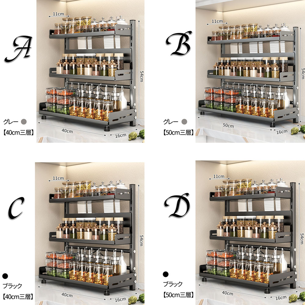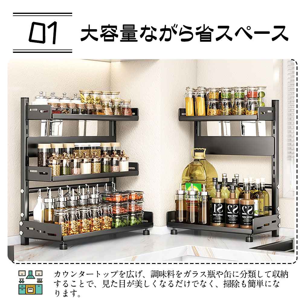 キッチン収納棚 調味料棚 キッチンラック 卓上収納 調味料収納調味料ラック 三層 台所収納 キッチン収納 防汚 防油 VB-01
