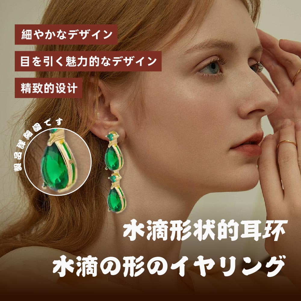 耳飾り ピアス イヤリング ロング グリーン クリスタル レディース ギフト ジュエリー アクセサリー 耳飾り 緑 イヤリング 水滴 ウォータードロップ ガール 豪華感 おしゃれ jtl016