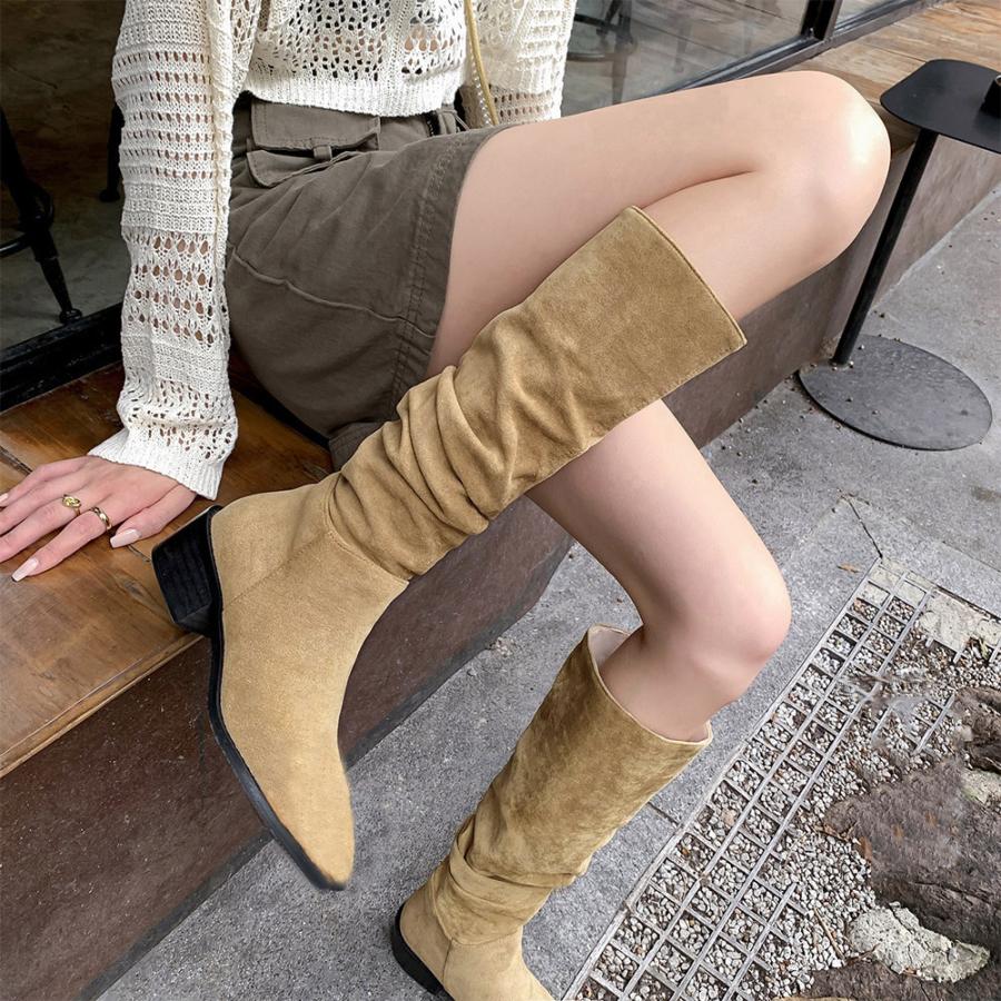 韓国 ローヒール ジョッキーブーツ くしゅくしゅ ニーハイブーツ 美脚脚長 通勤通学 カジュアル秋冬シューズ 歩きやすい