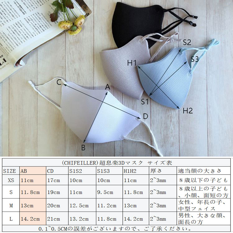 サイズ: 冬用M(女性、中高生、普通) 冬用L(男性、大きな顔、面長) 冬用S(8歳以上、小顔、面短) 冬用XS(8歳以下、超小顔) 夏用M(女性、中高生、普通) 夏用L(男性、大きな顔、面長) 夏用S(8歳以上、小顔、面短) 夏用XS(8歳以下、超小顔)