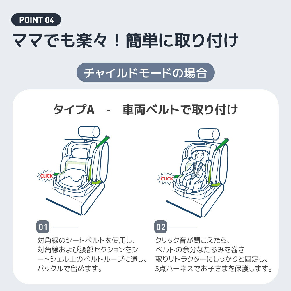 04未来への安全な旅路、0-12歳、身長40-105cmまで対応 生まれた赤ちゃんから、ジュニアシート離れする年齢まで長く使えます。また、成長にと共に、取り外せるインナークッションとシートに調節機能がついで、子供の体型にフィットできます。
