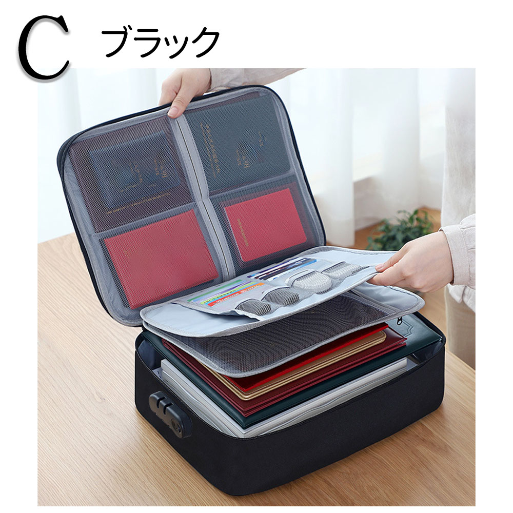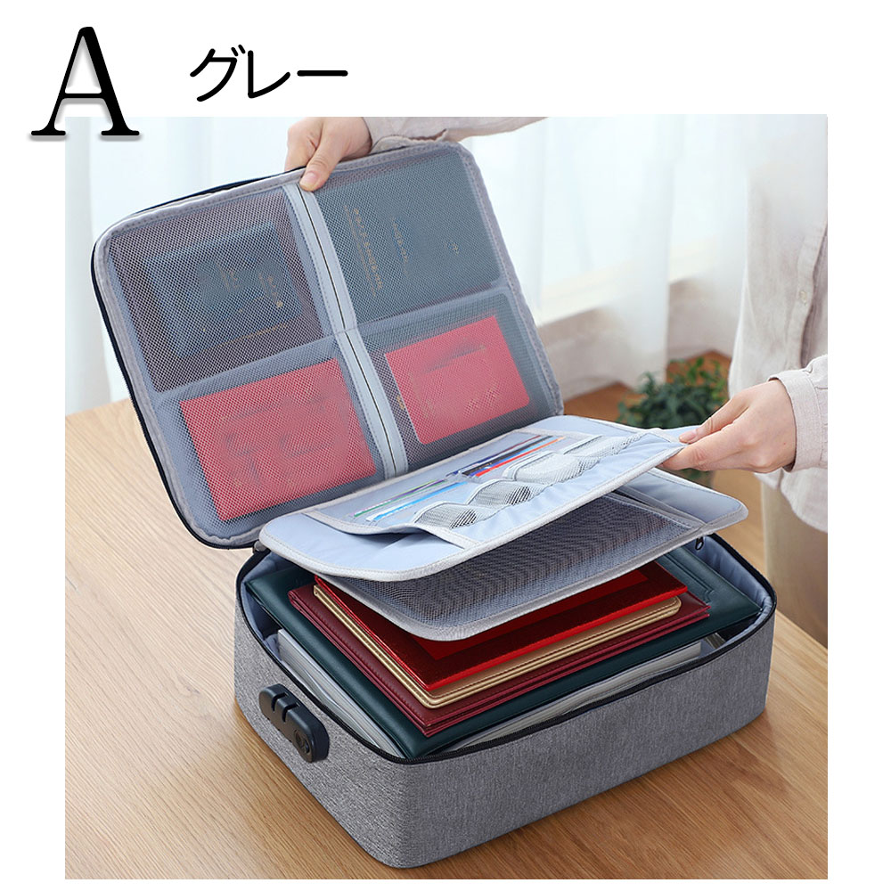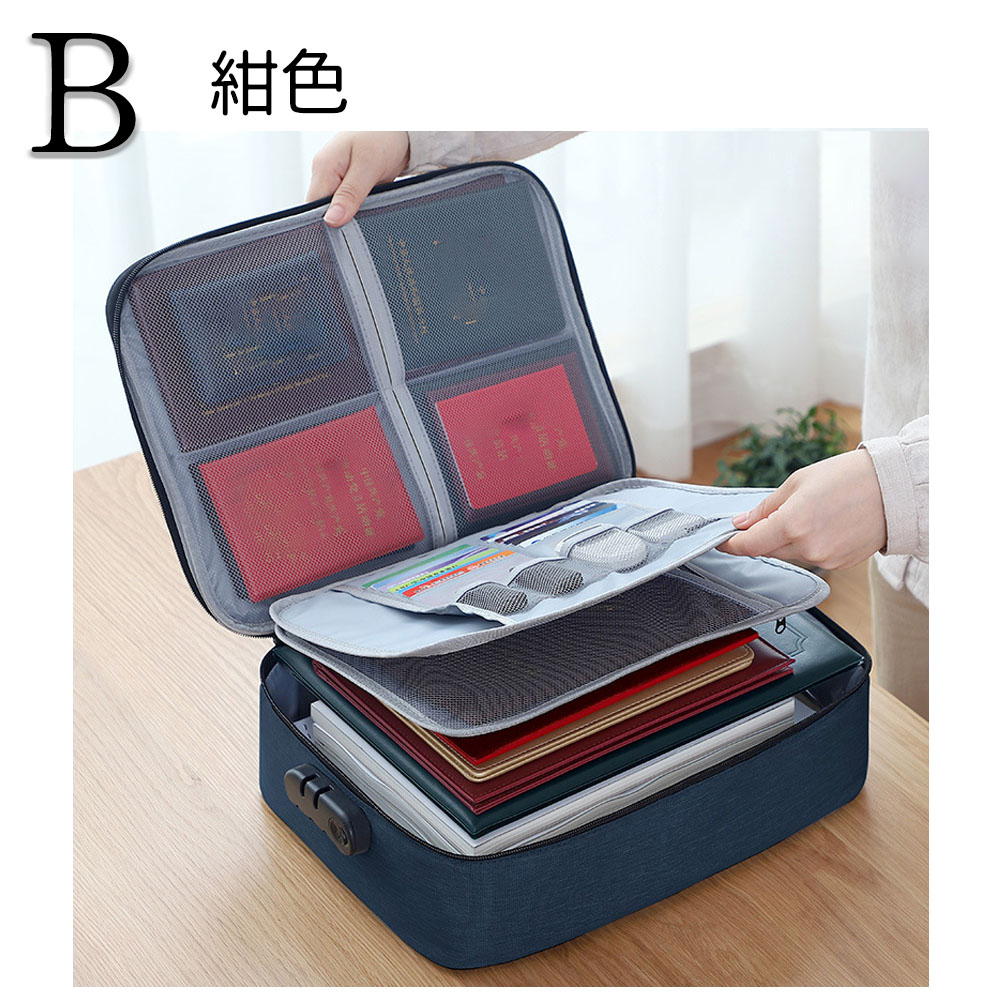 書類収納バッグ 3層式 書類保管ケース ダイヤルロック式 防犯 防水 手提げ 収納ポーチ コードロック付き 整理 出張 旅行便利