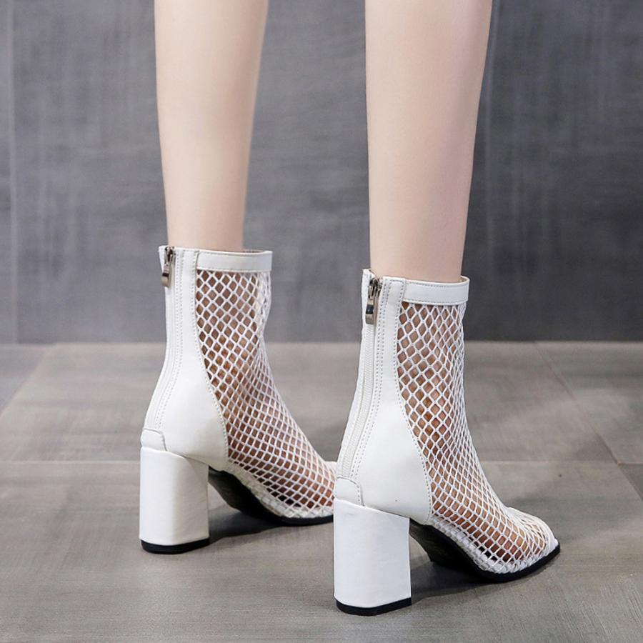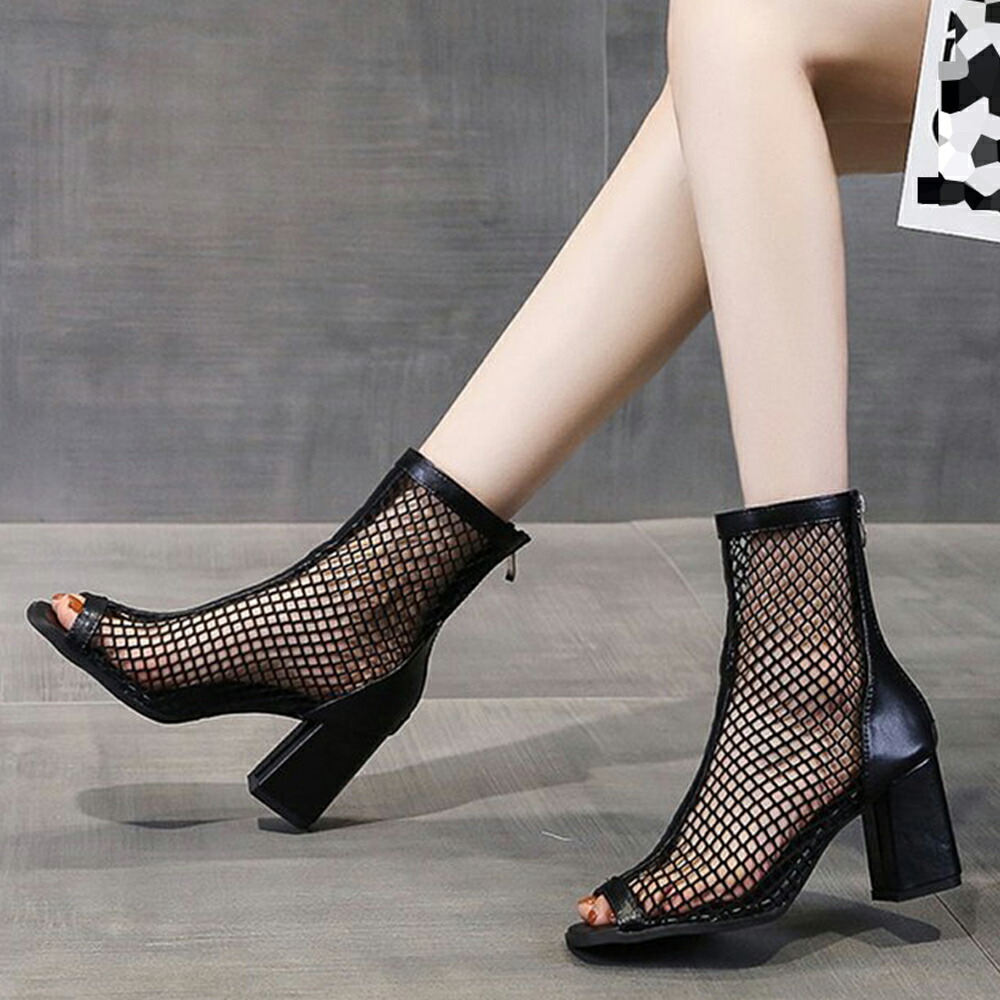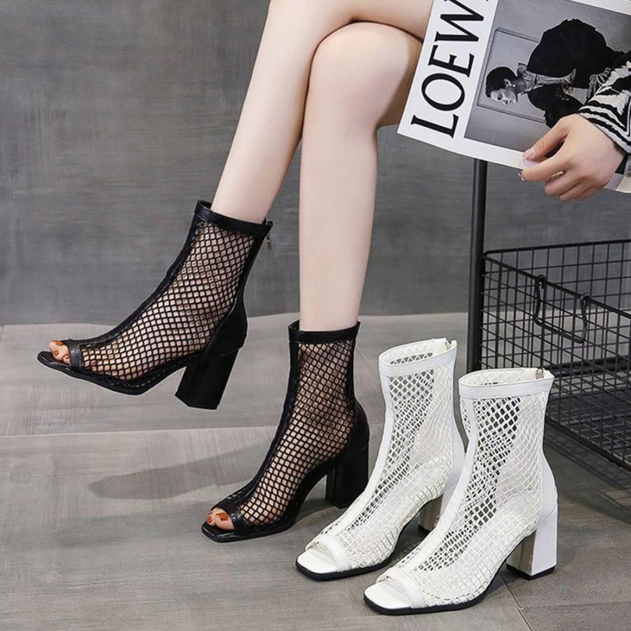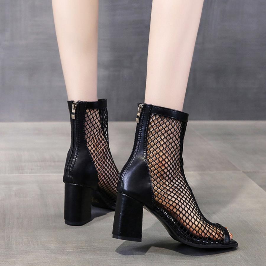 オープントゥ サマーブーツ レディース バックジッパー ハイヒール夏ブーツ 歩きやすい 通気性 美脚脚長 おしゃれ 夏靴