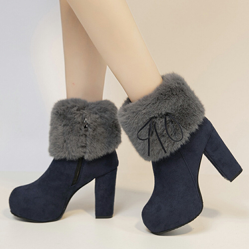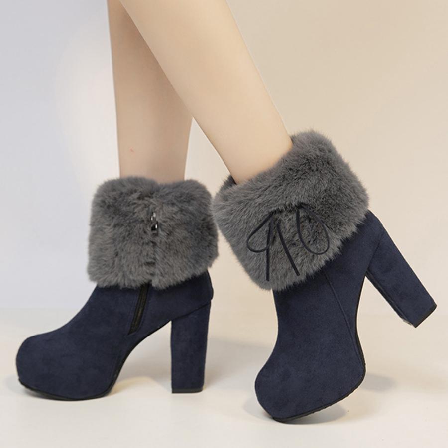 ファーブーツ ブーティー 太ヒール 韓国靴 レディース靴 ブーツ ウエスタン