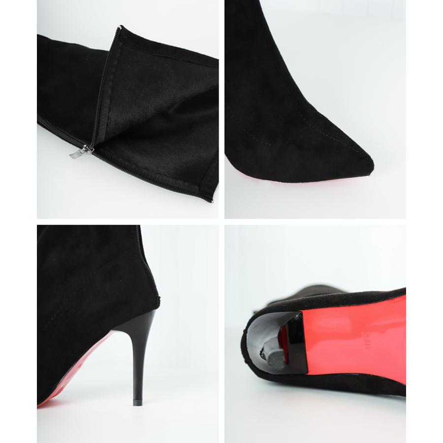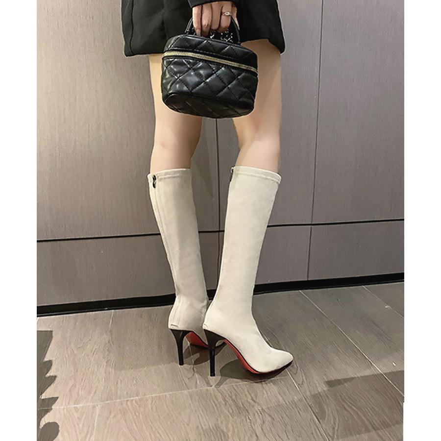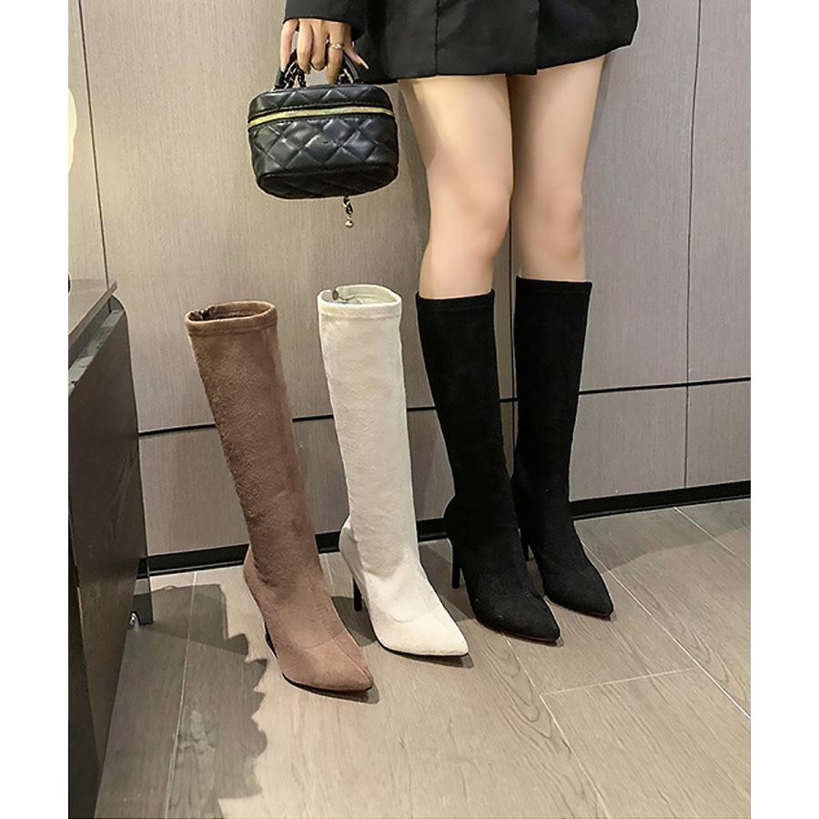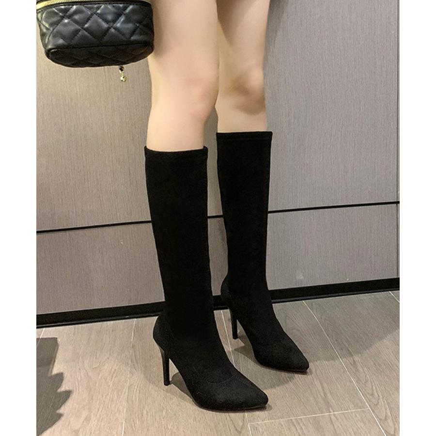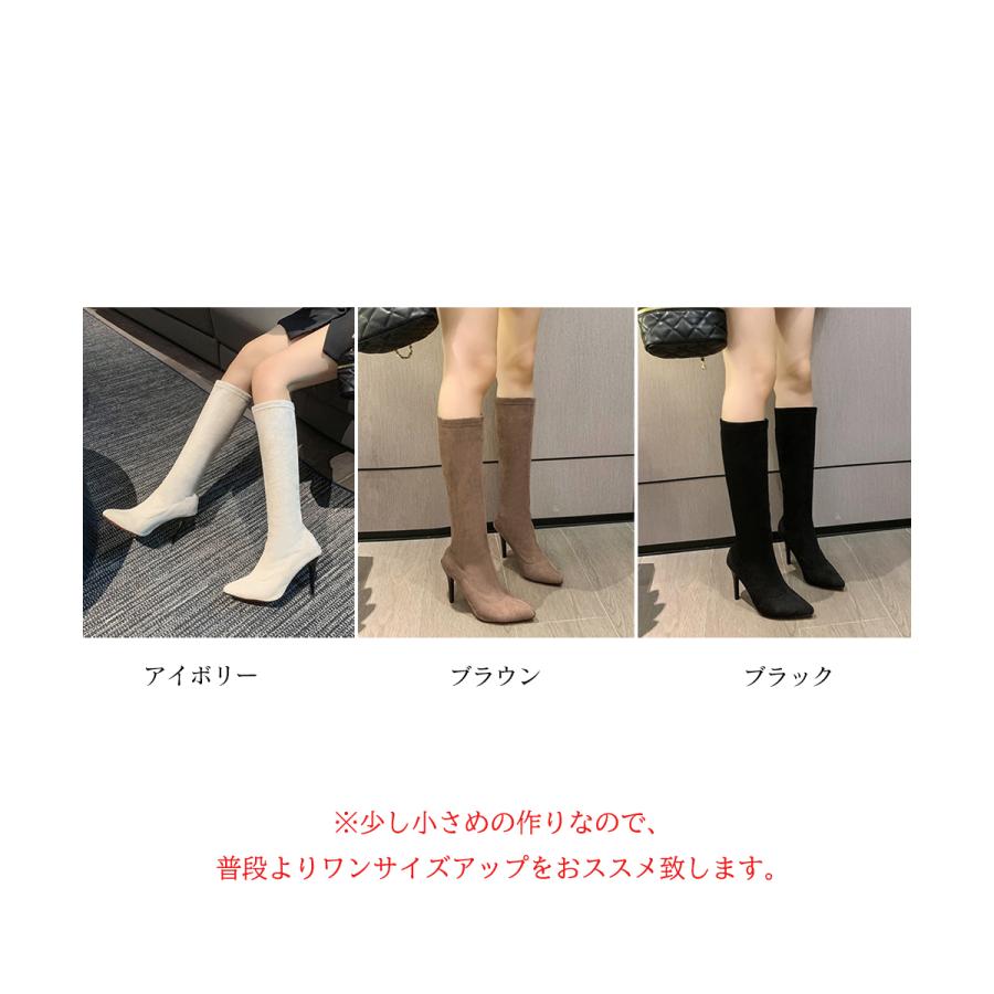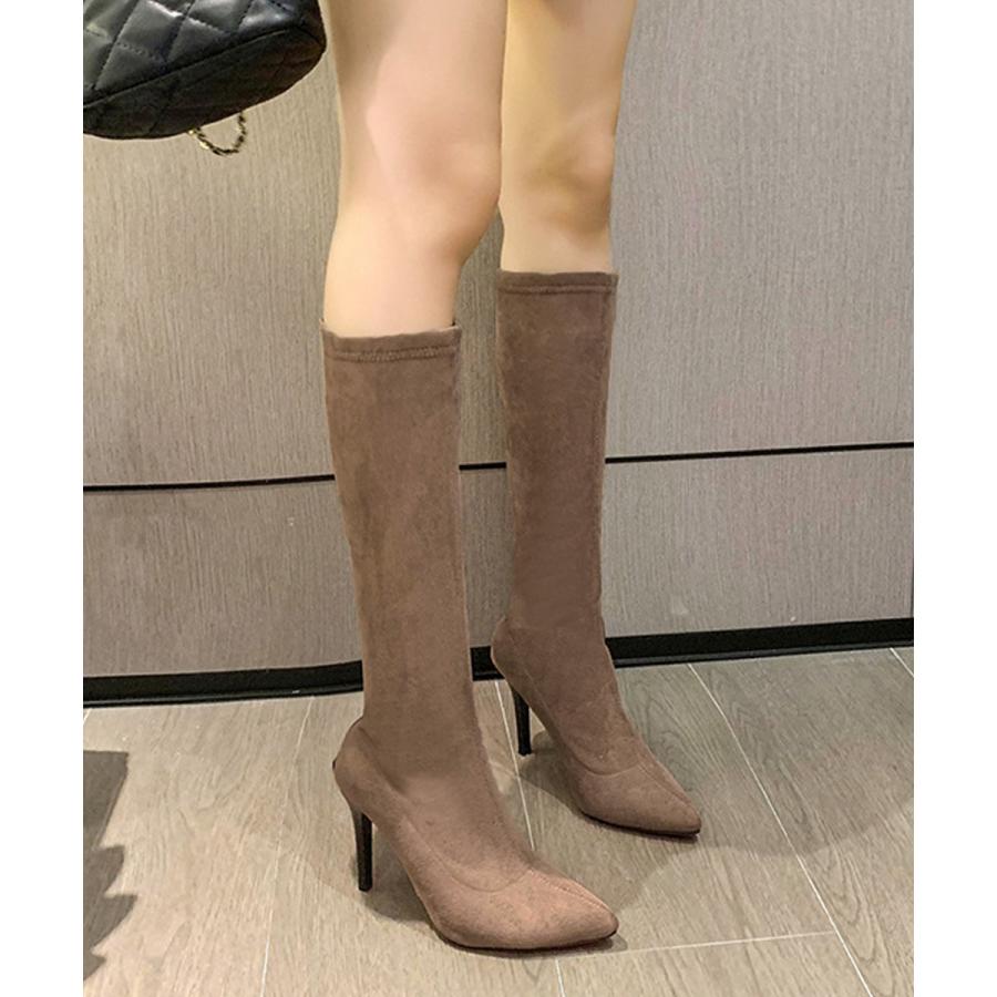 9cmハイヒール 美脚ブーツ 脚長 膝下 スエード調 大人 オルチャン きれいめ シンプル 秋冬 人気 韓国