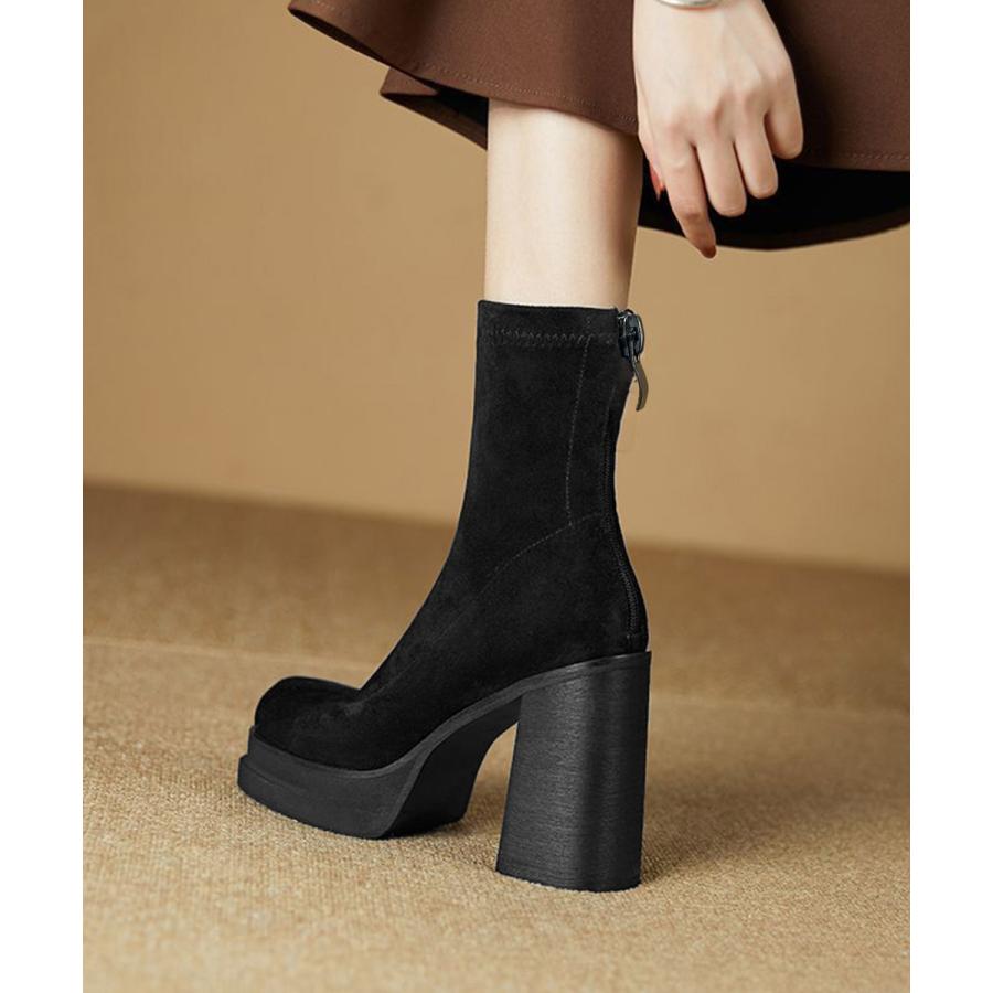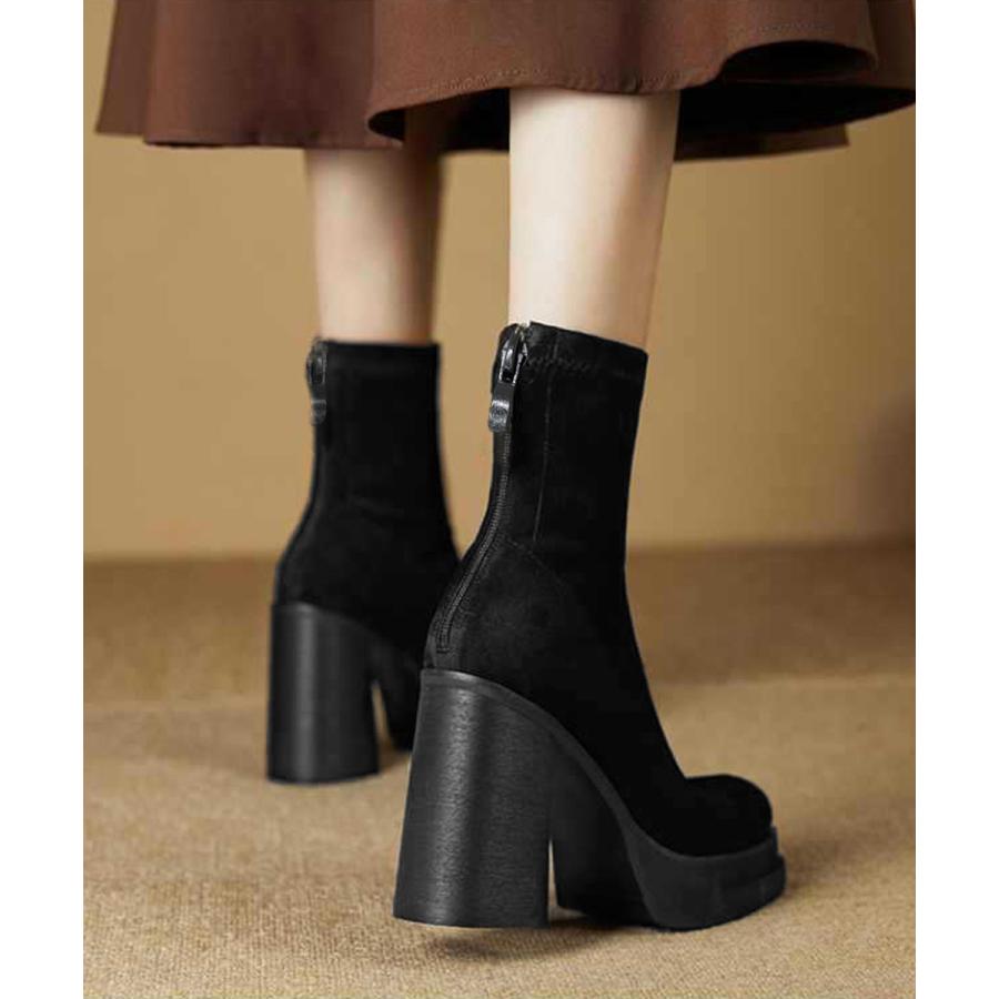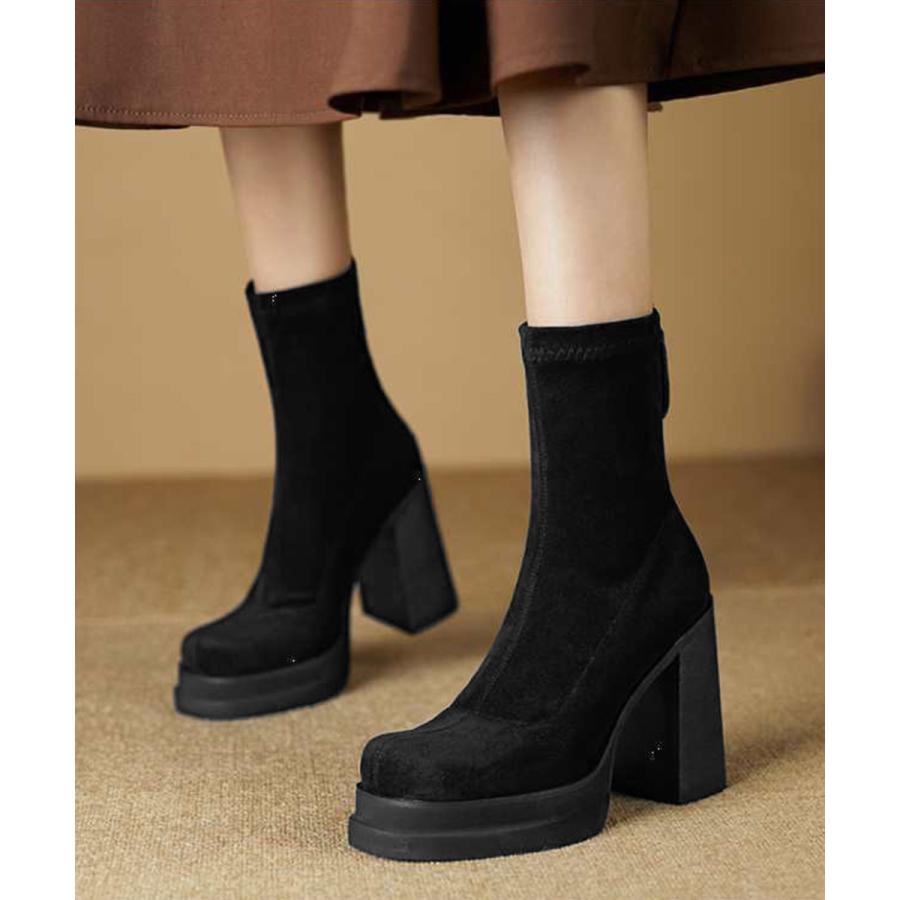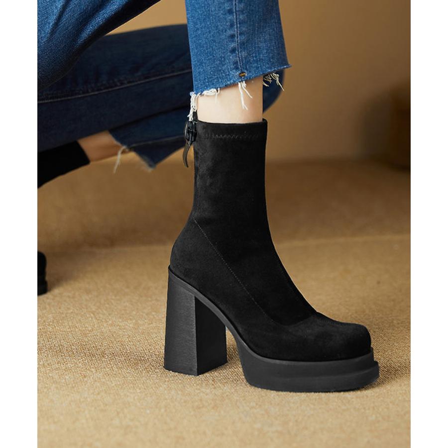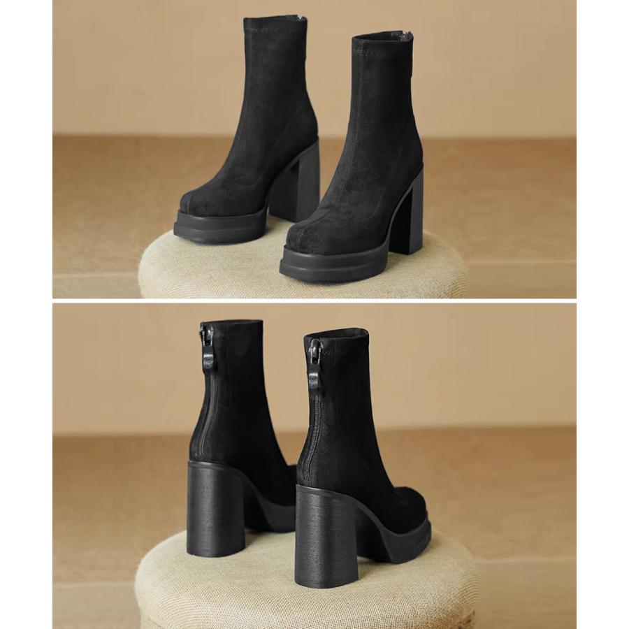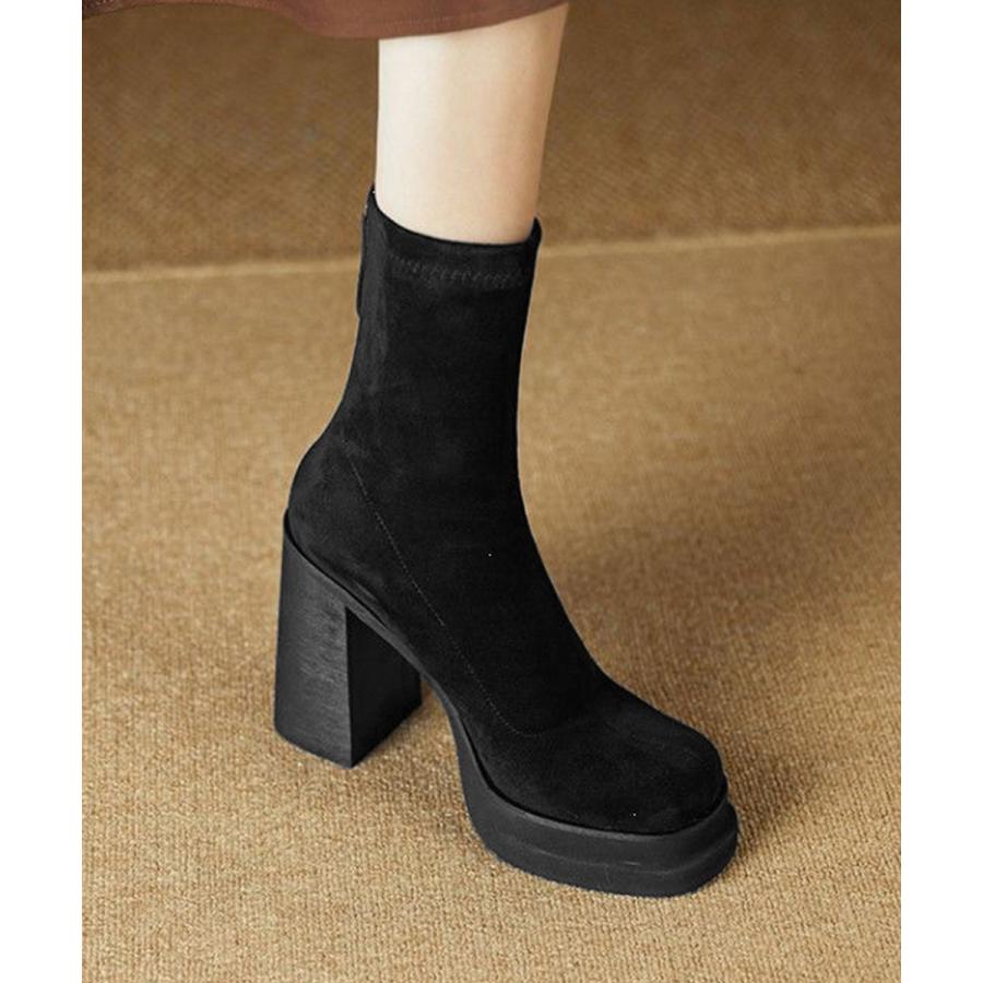 韓国 厚底ショートブーツ レディース 疲れないハイヒールスエードブーツ きれいめ 歩きやすい靴 アンクルブーツ履きやすい
