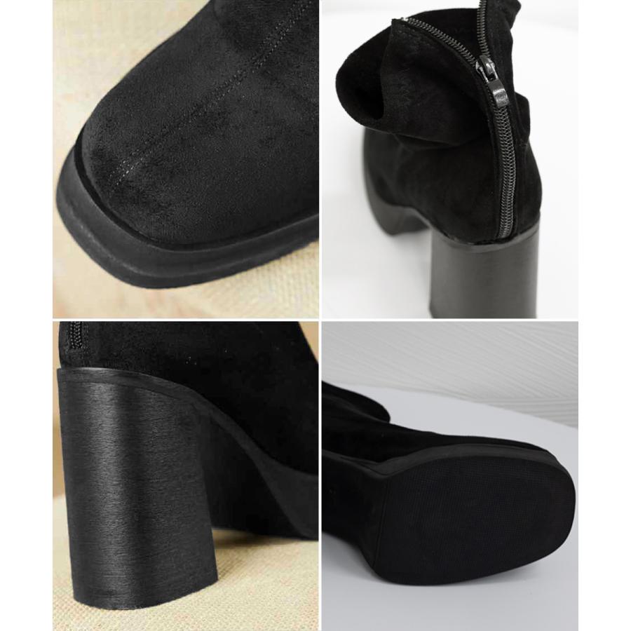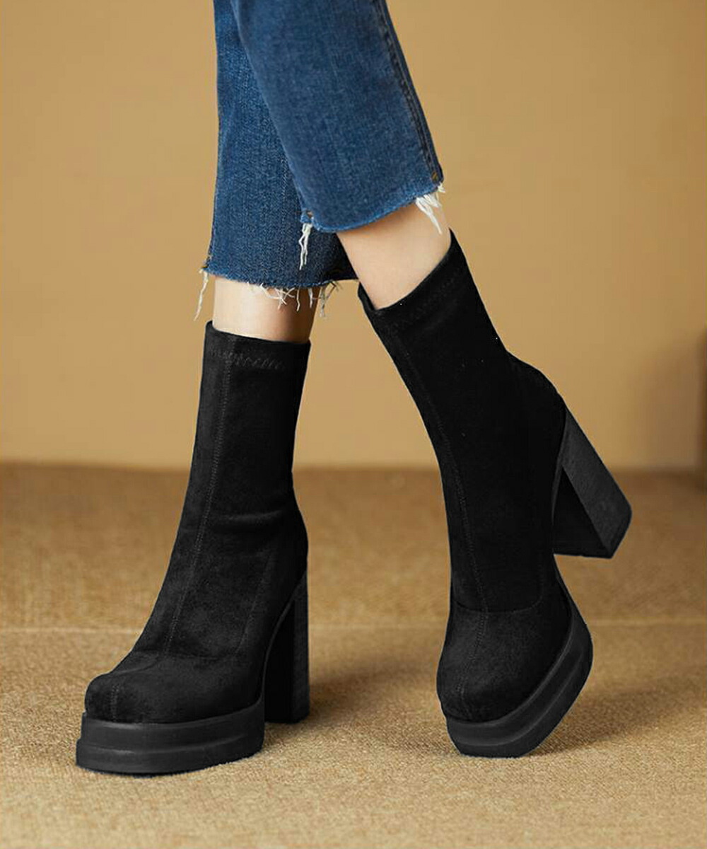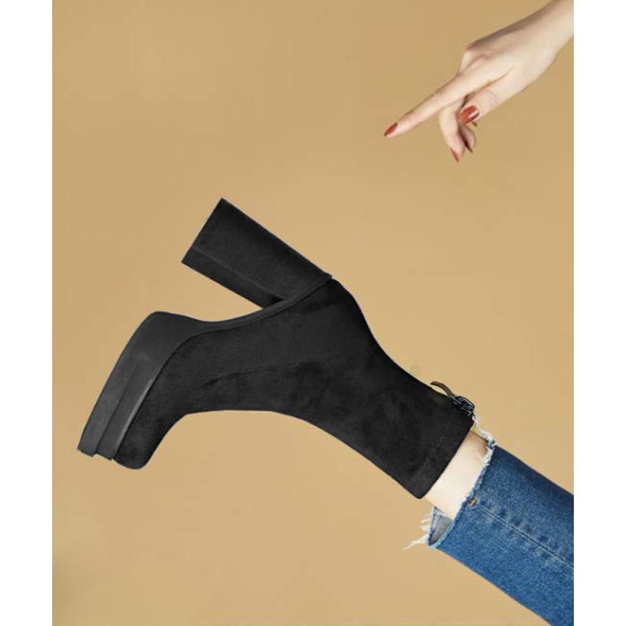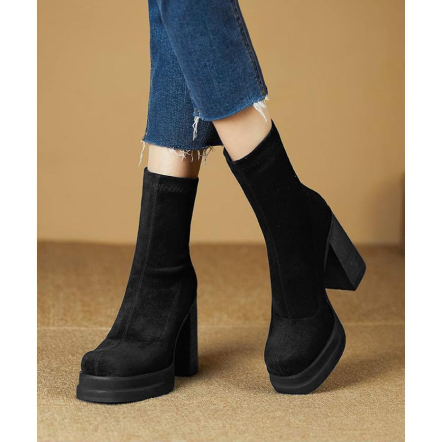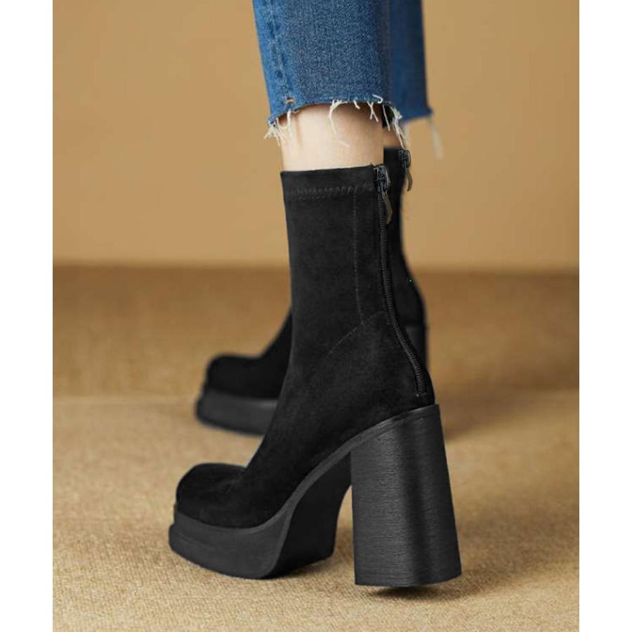 韓国 厚底ショートブーツ レディース 疲れないハイヒールスエードブーツ きれいめ 歩きやすい靴 アンクルブーツ履きやすい