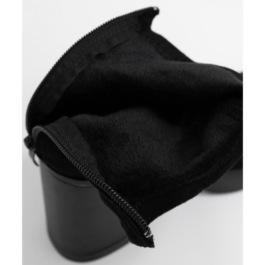 シーズンライクなスエード調素材にエコレザーチャンキーヒールの異素材mix仕様、お洒落だけでなく安定感も抜群の韓国っぽショートブーティ