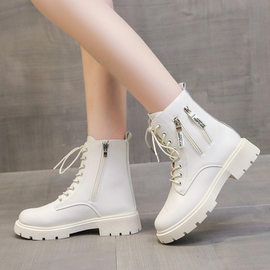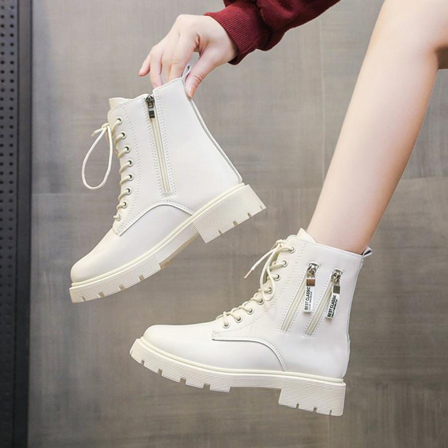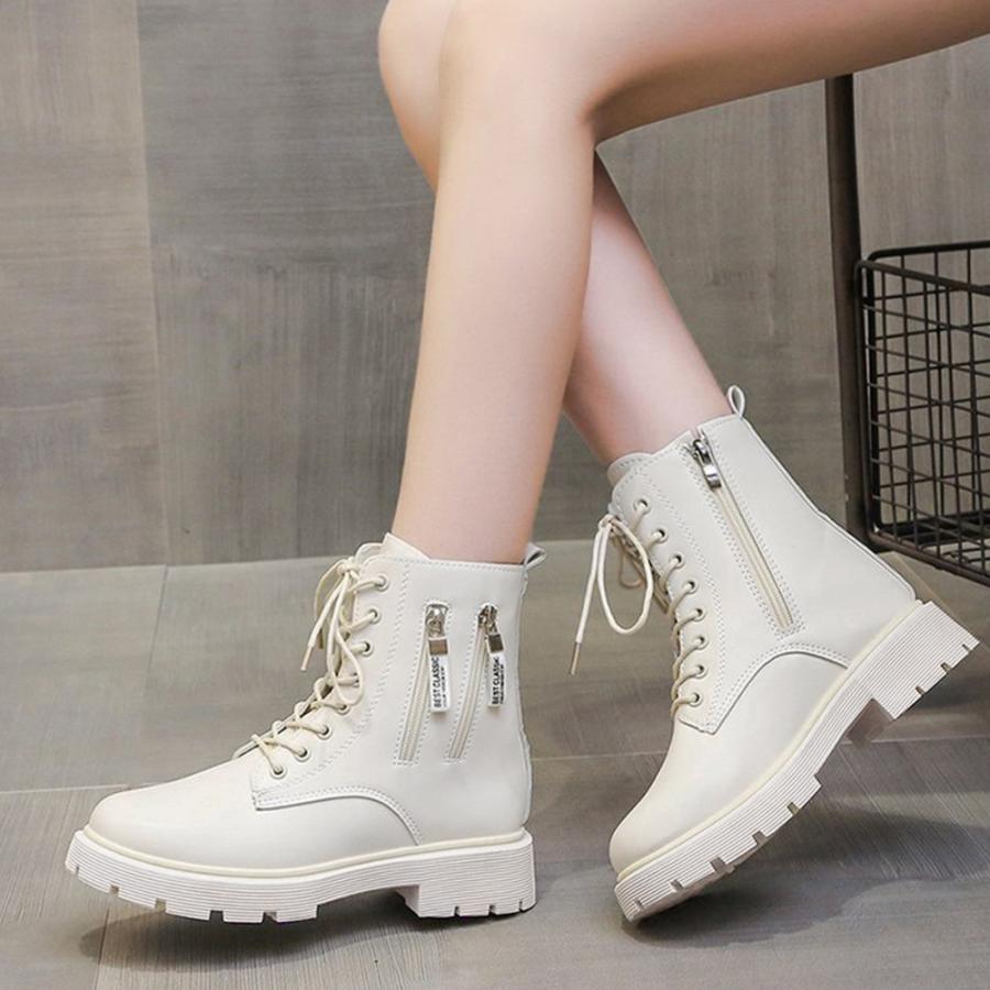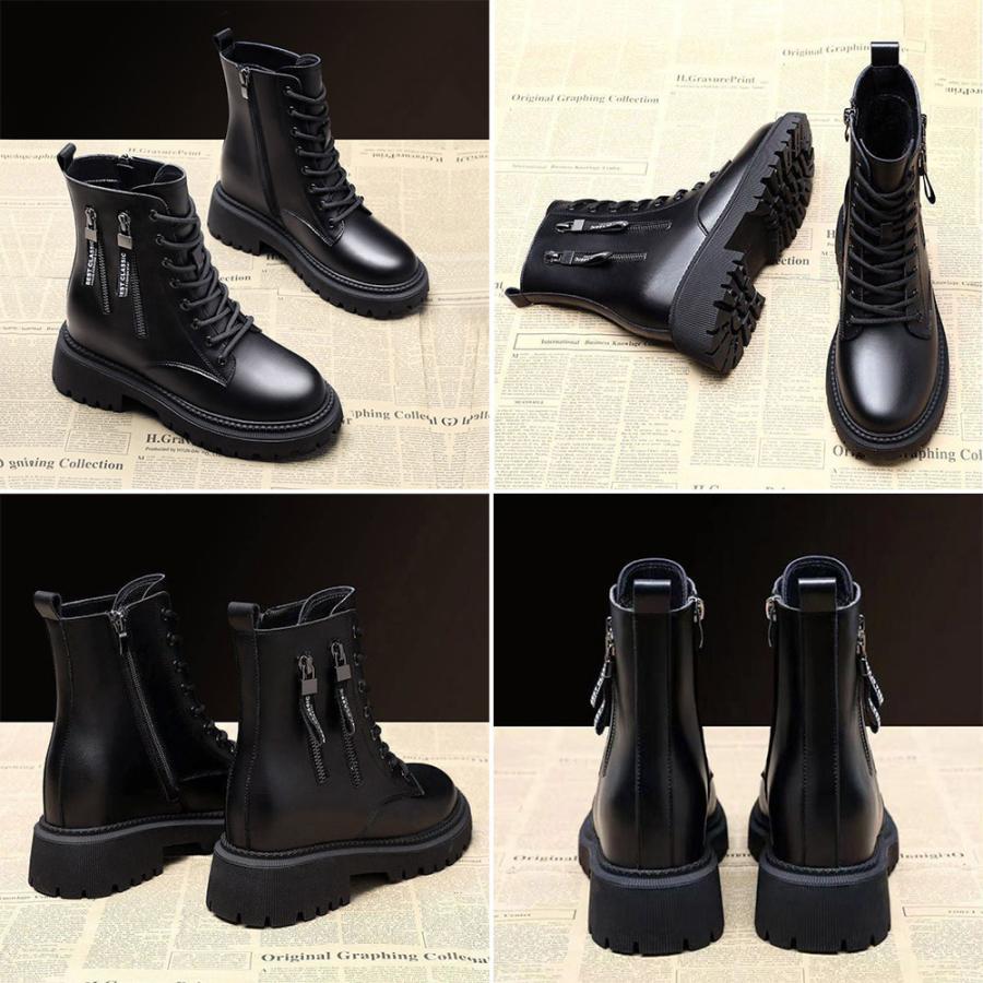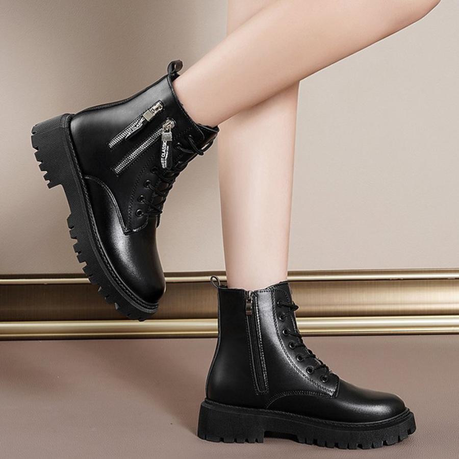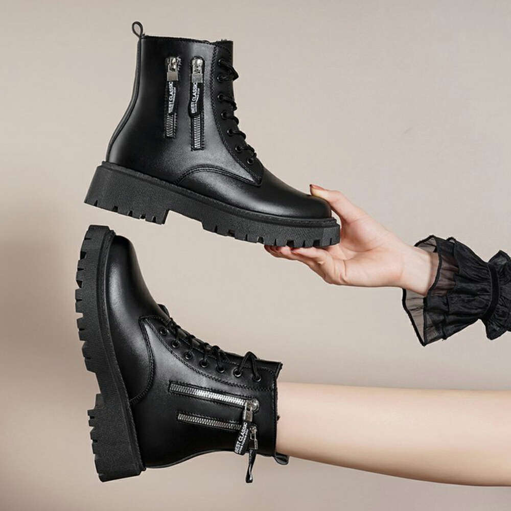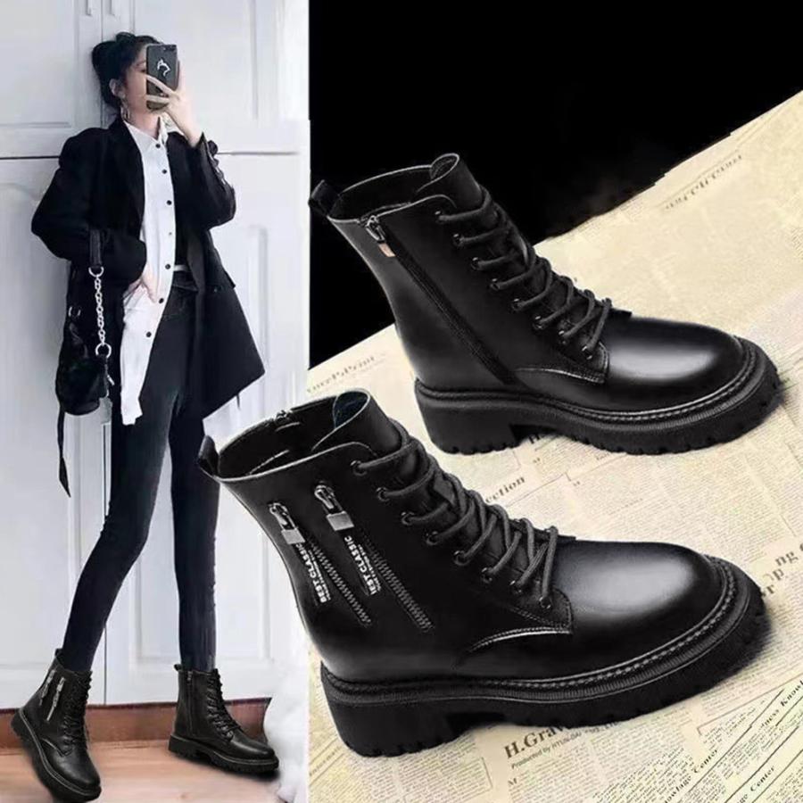 韓国レースアップブーツ 歩きやすい ラウンドトゥマニッシュシューズ レディース アンクルブーツ サイドジッパー 痛くない