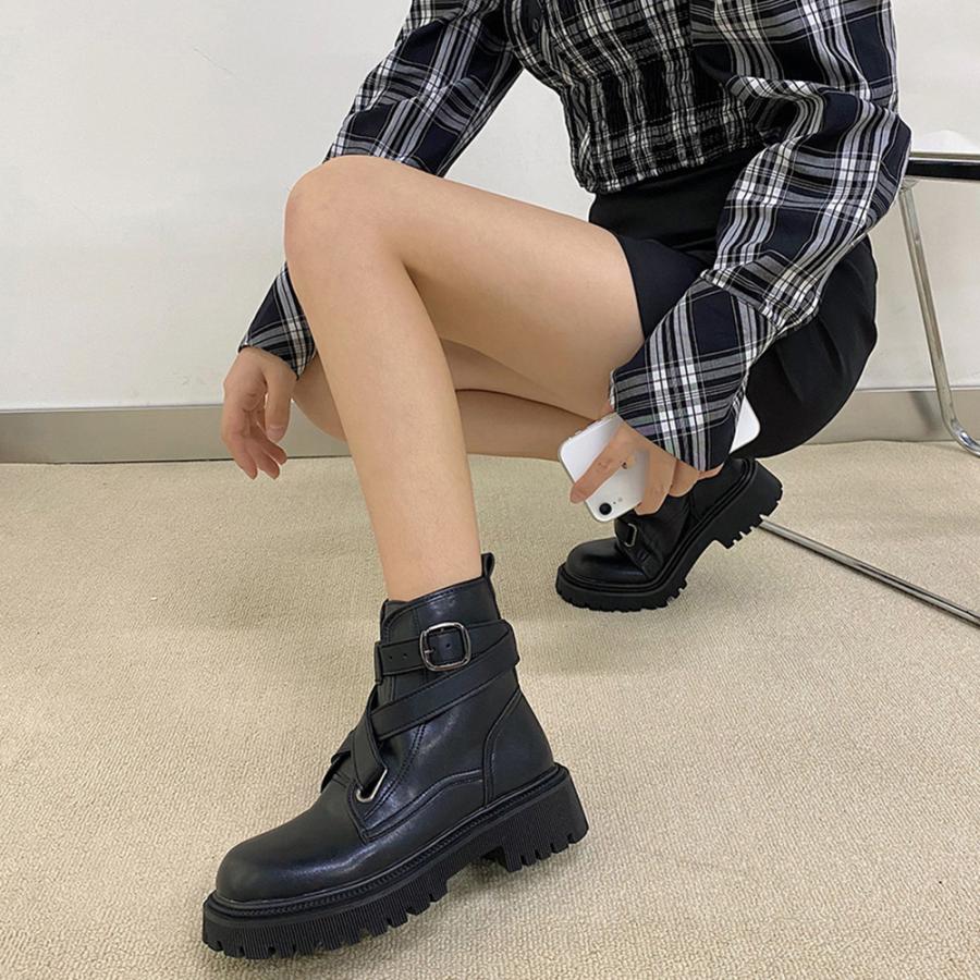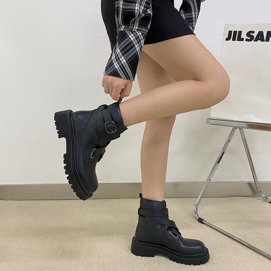 おしゃれ ミドルブーツ エンジニアブーツ カジュアル ストリート風 ストームブーツ ベルト 歩きやすい 秋冬靴かっこいい